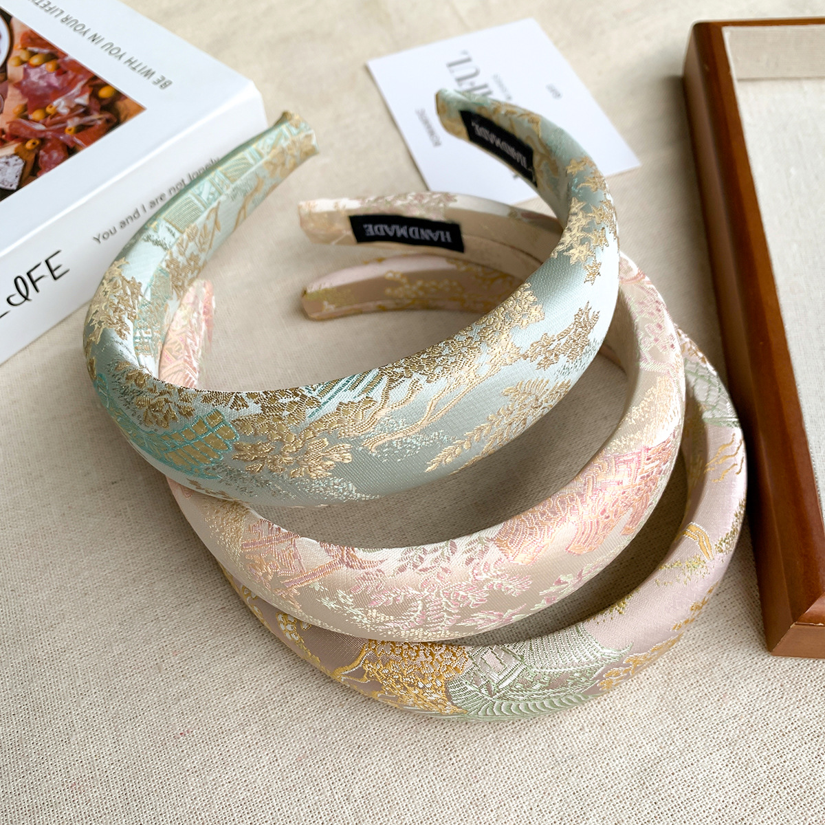 新中式提花高颅顶女中国风复古发饰头箍高级感缎面压发发箍