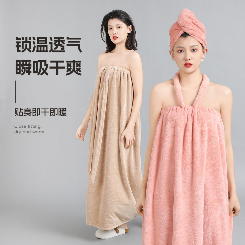 浴裙可穿可裹绑带式浴巾挂脖浴袍珊瑚绒吸水透气加长浴裙