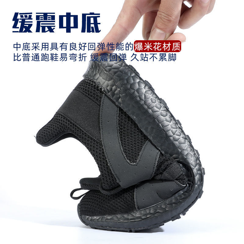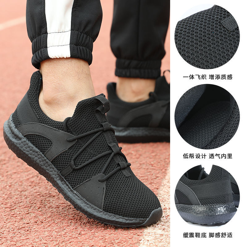 夏季户外新式作训鞋男黑色超轻飞织网布面透气体能训练鞋