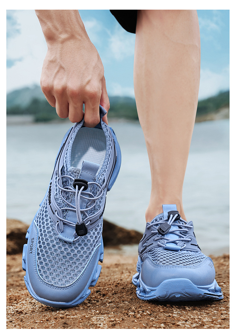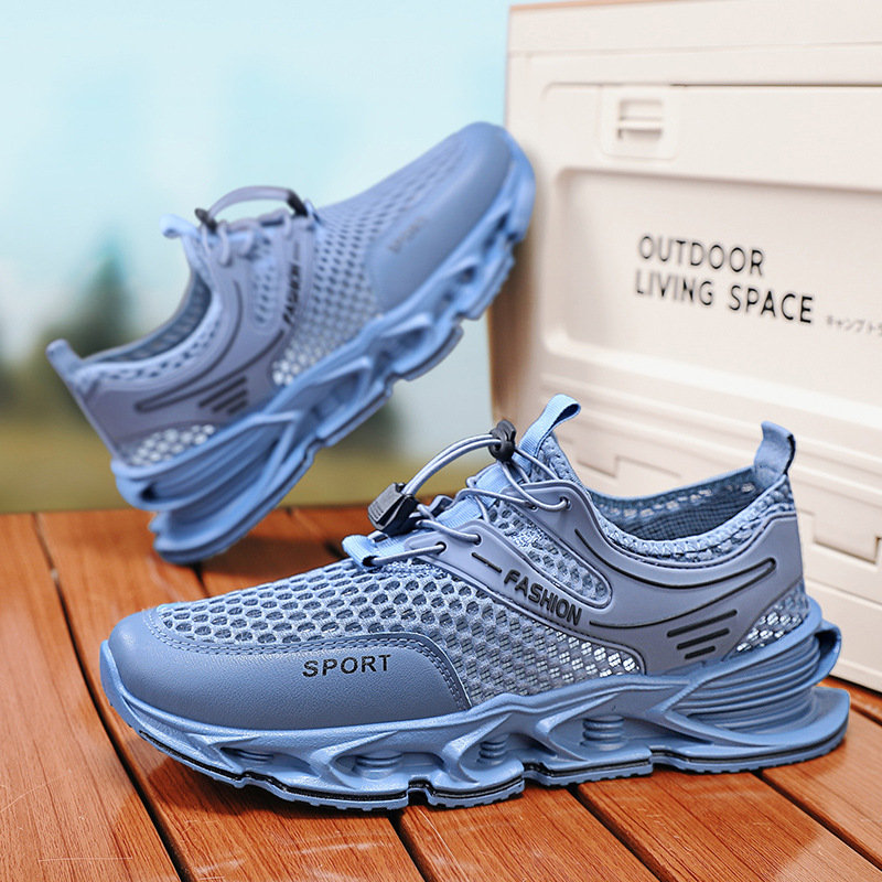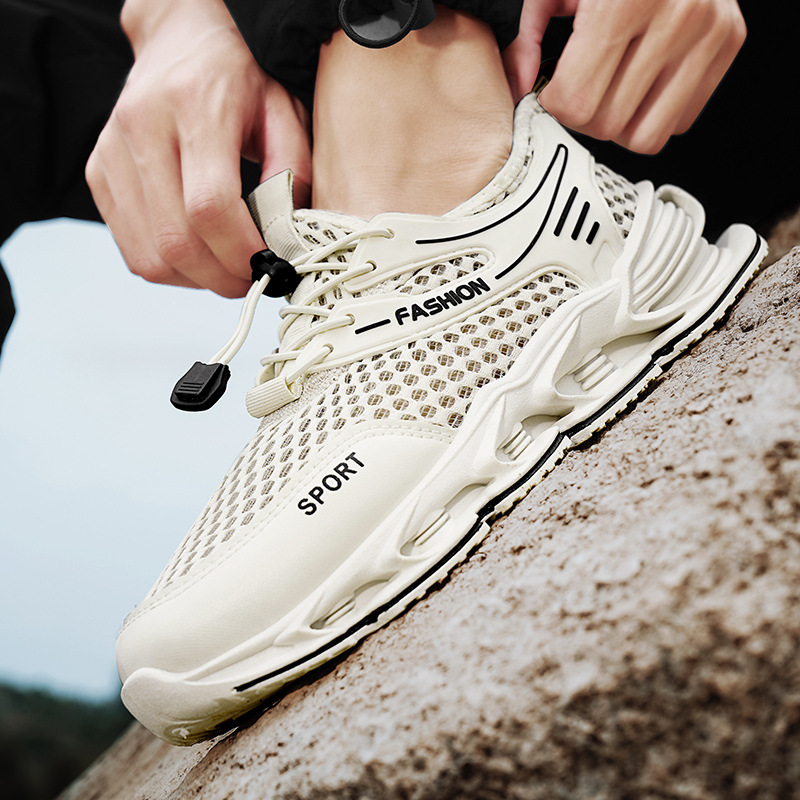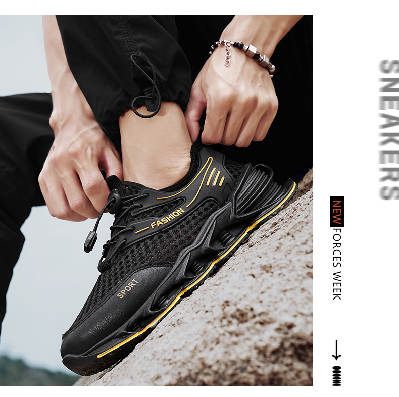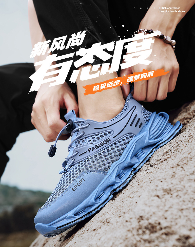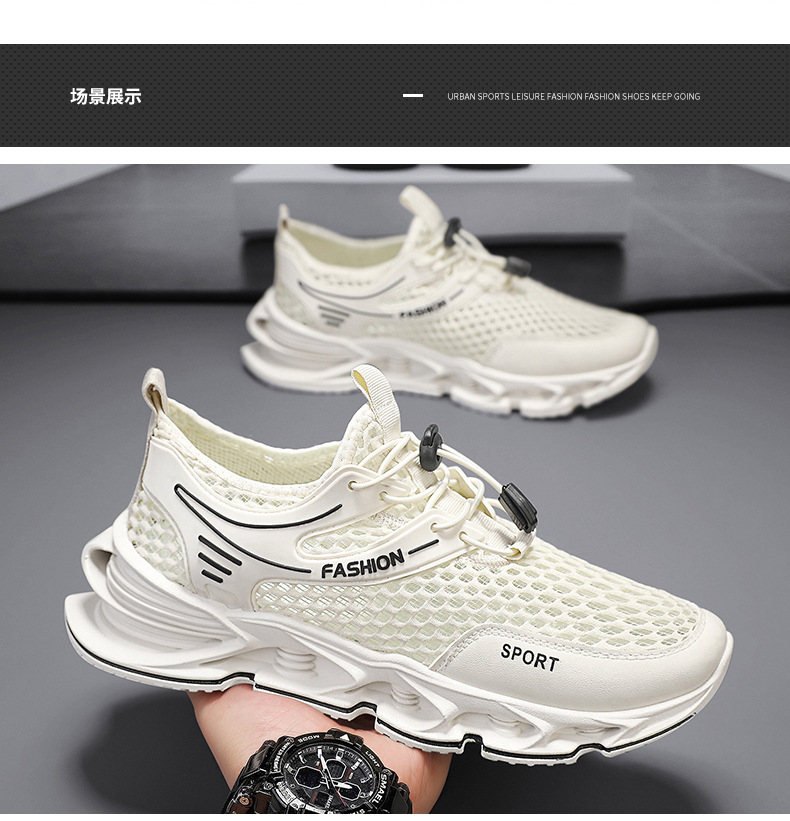 夏季新款网面透气跑步鞋男厚底户外跑步健身运动鞋学生减震休闲鞋