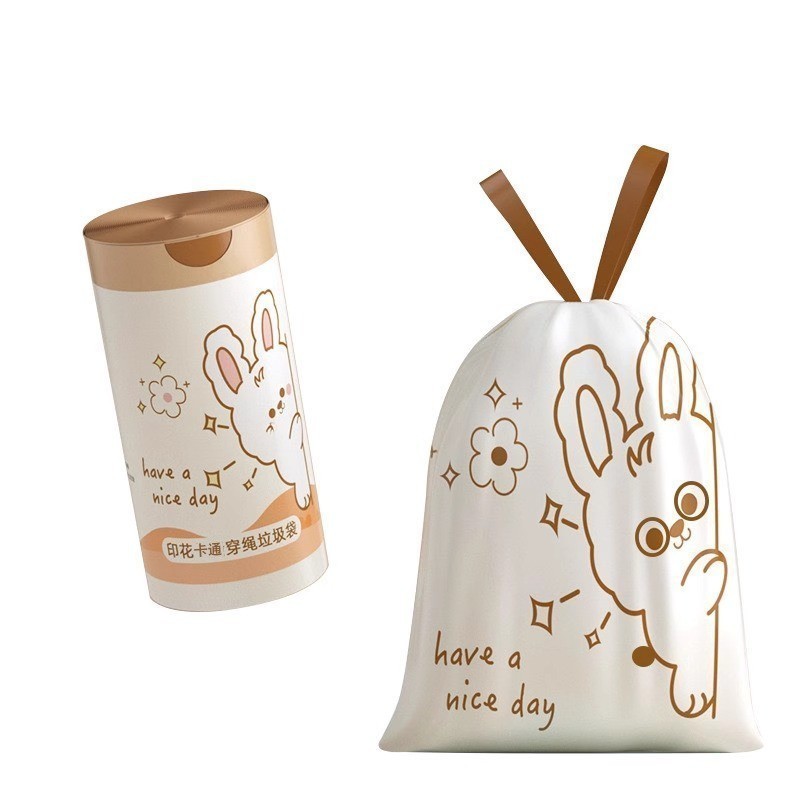 抽绳式印花垃圾袋家用加厚手提厨房宿舍学生大号塑料袋提拉收口