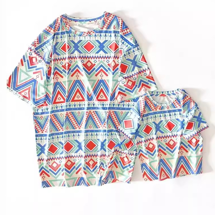 儿童短袖T恤亲子装暑假度假旅游多巴胺颜色宽松版夏装上衣