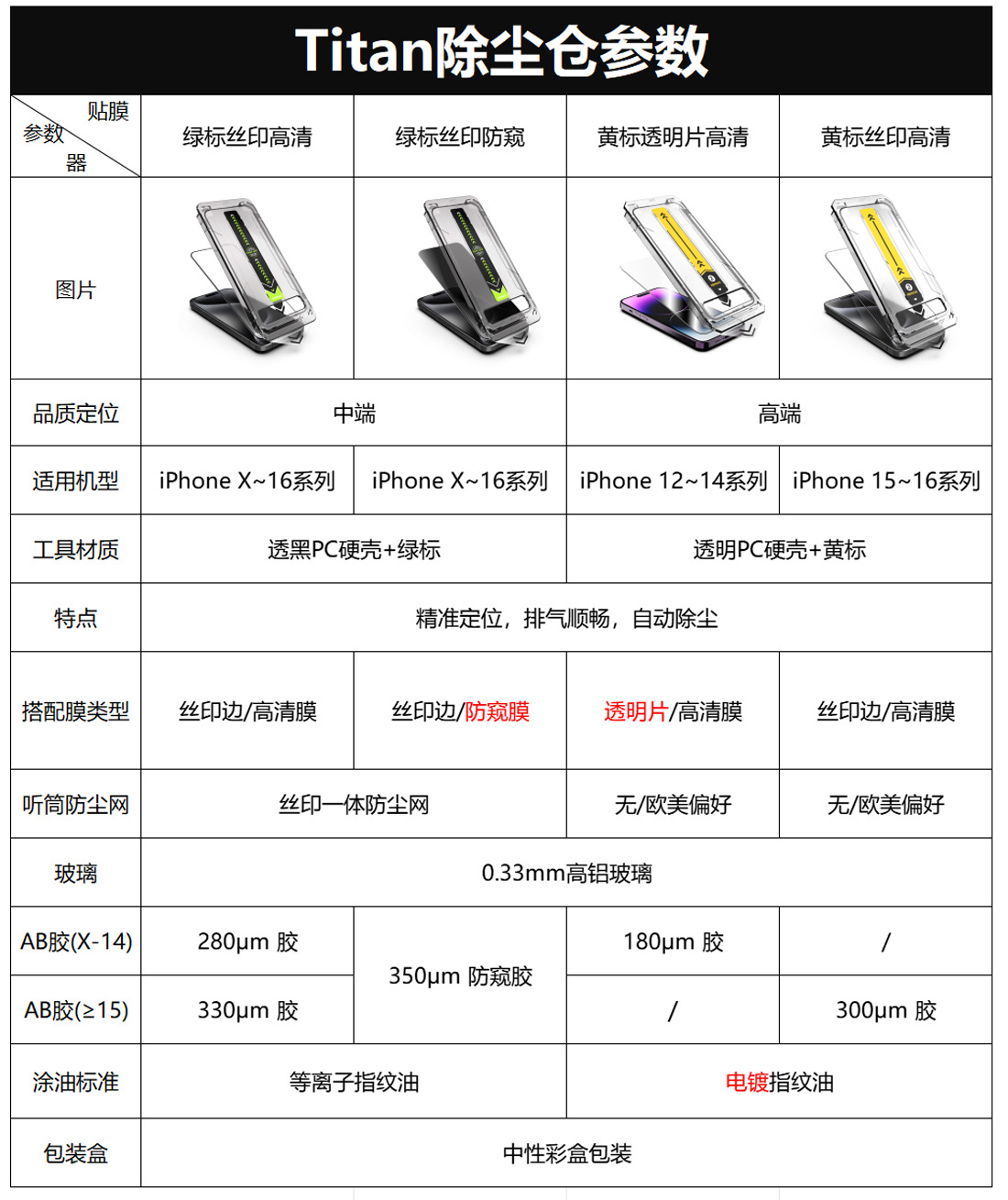 - 磨砂高清膜+透黑无尘仓【500起订】