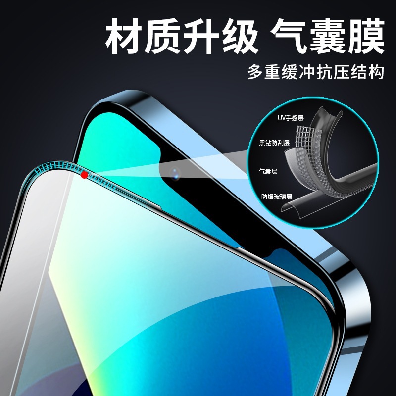 适用苹果16气囊钢化膜15promax高清气囊膜14防窥气囊膜12抗摔膜XR