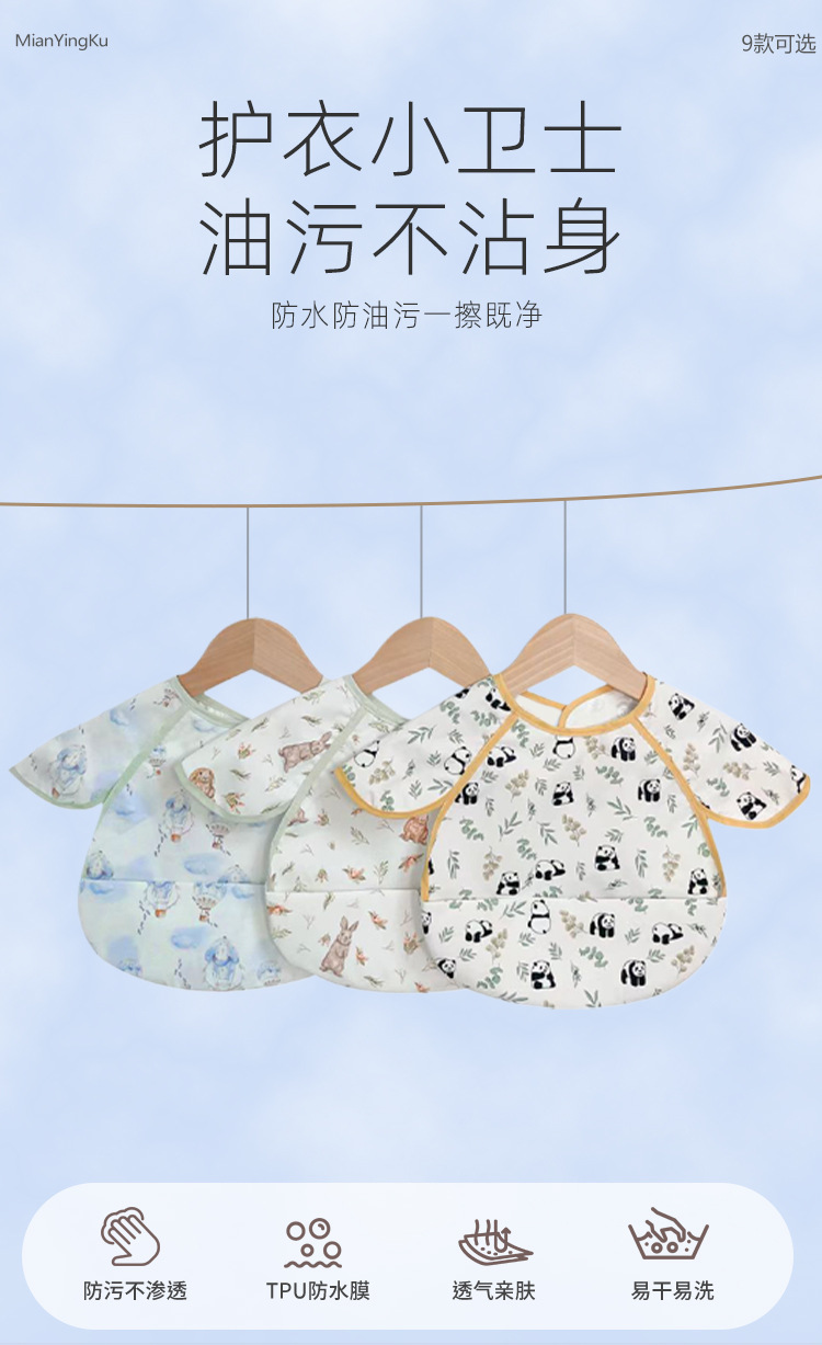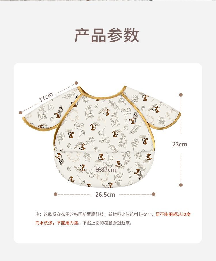 儿童罩衣夏男女宝宝吃饭围兜防水饭兜婴儿丹麦反穿衣母婴用品批发