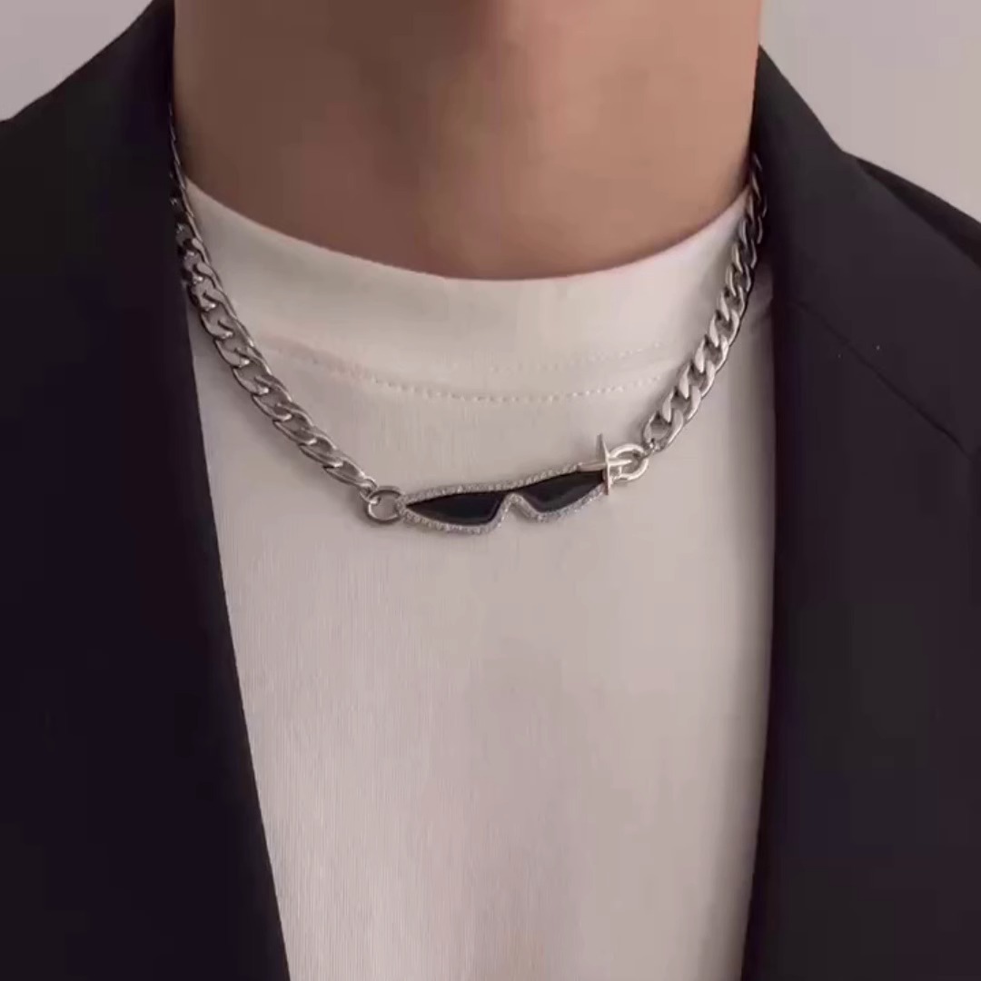 新款墨镜项链钛钢简约潮牌个性轻奢中性风高级感小众饰品