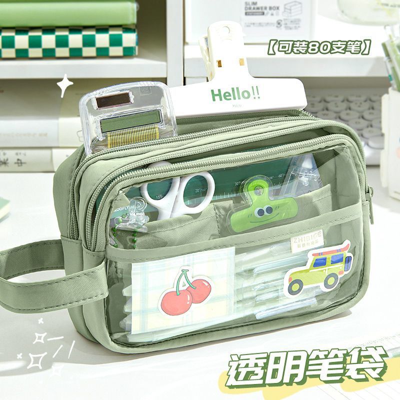 莫兰迪色透明双层拉链笔袋 ins风日系高颜值高中小学生简约文具袋