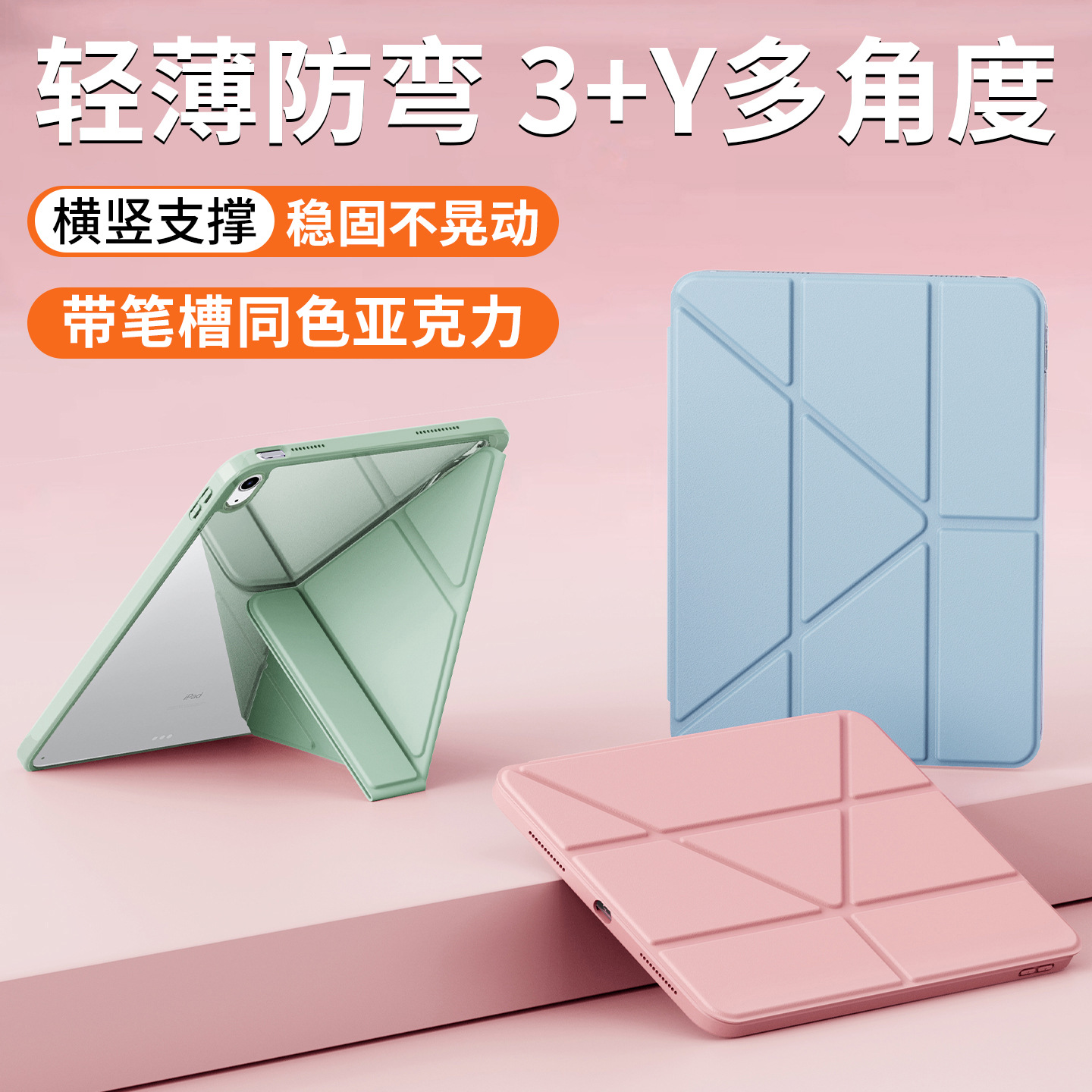 适用ipad11保护套带笔槽Y折10.2寸防弯pro13九代air456亚克力78壳
