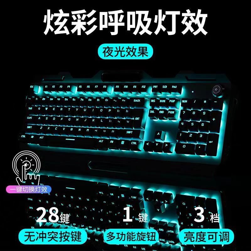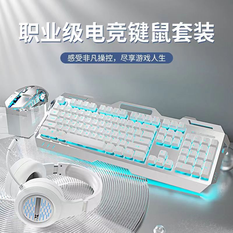 - 青轴-银白色蓝光单键盘+电竞鼠标+发光耳机【经典版】-