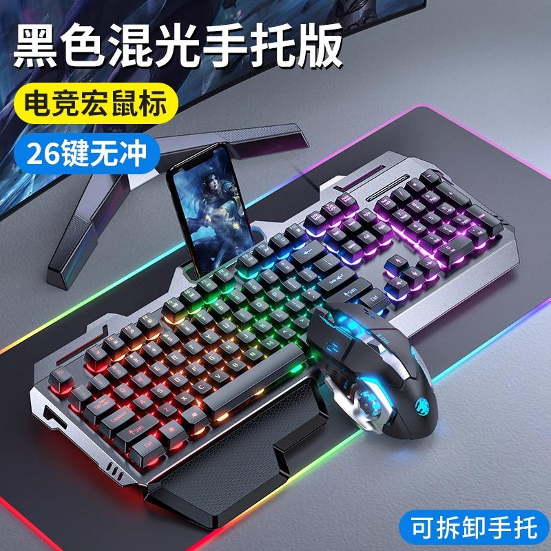 - 青轴-银黑色混光单键盘+电竞鼠标【手托版】-否