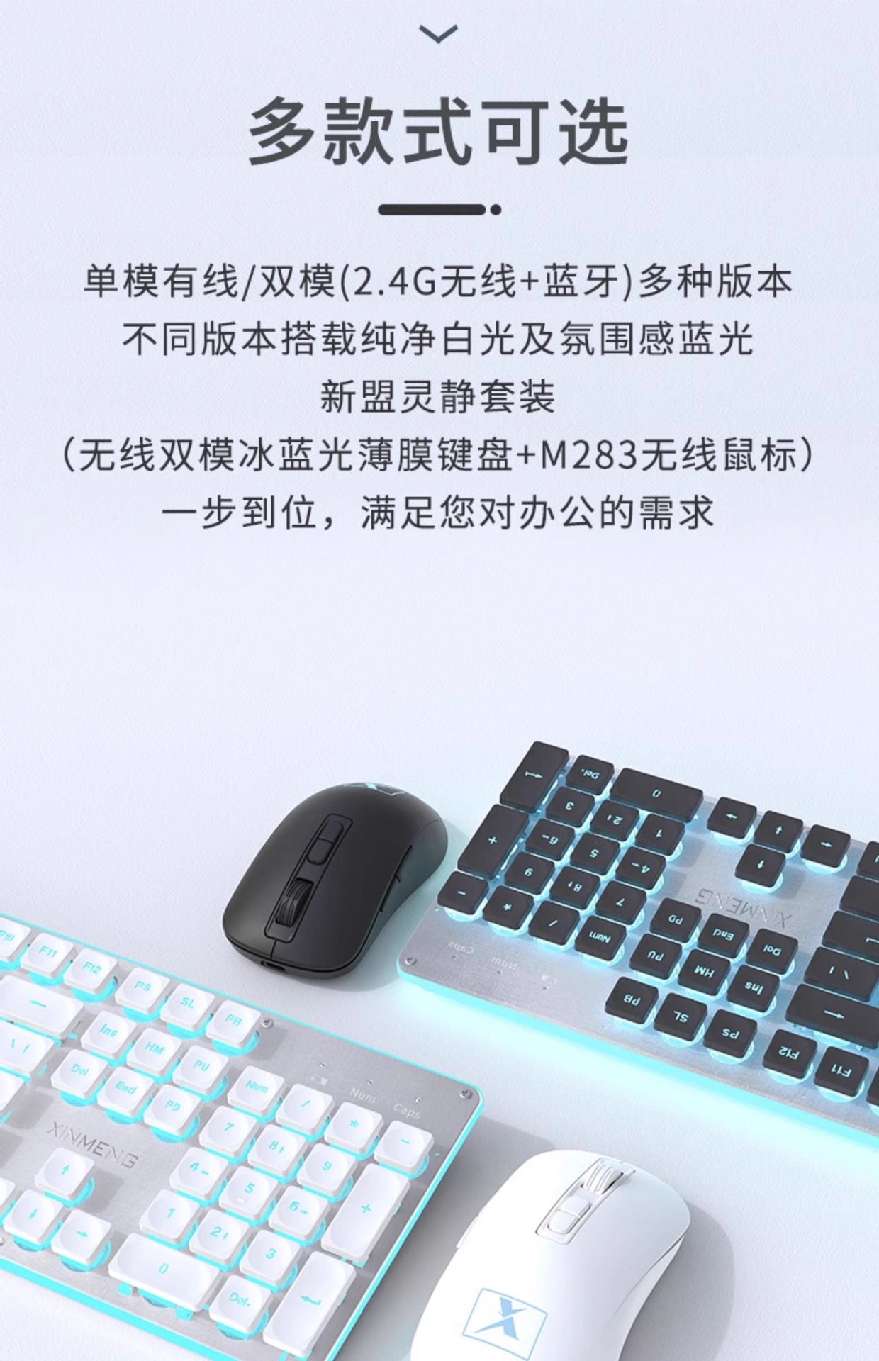 灵静白色冰蓝光套装(2.4G+蓝牙无线双模)