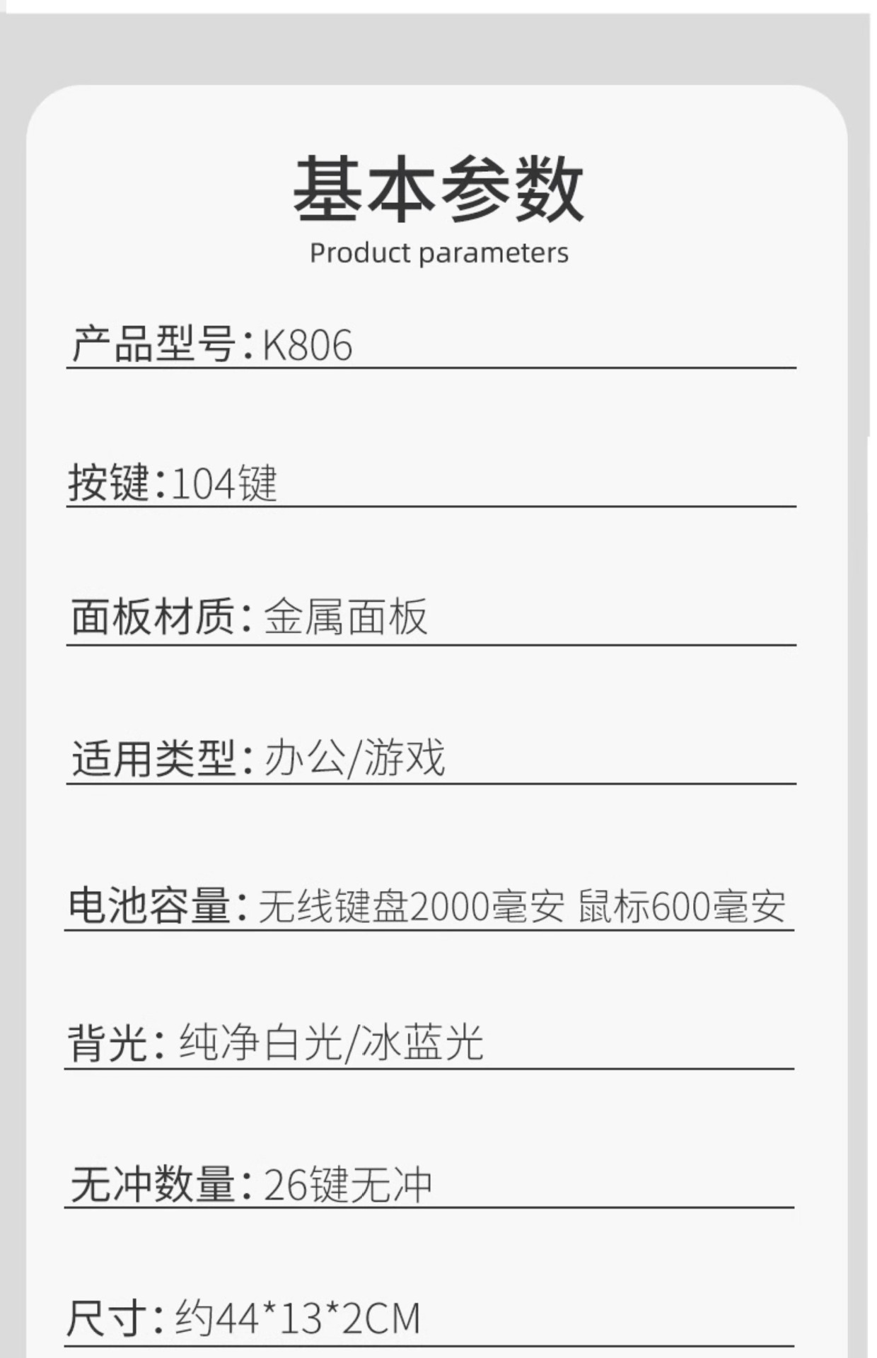 K806无线静音键盘鼠标套装茶轴机械手感蓝牙游戏办公打字女生