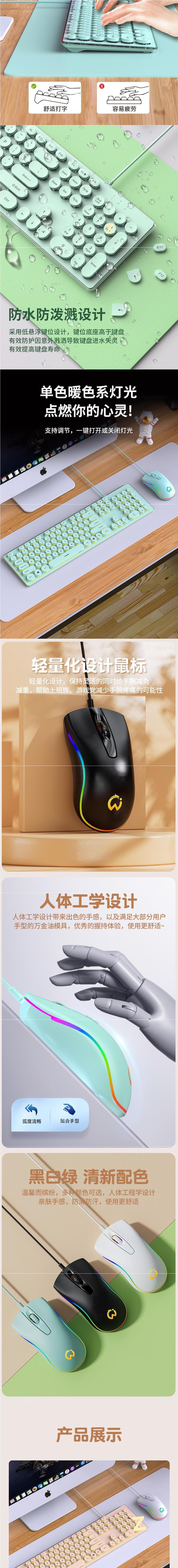 抹茶绿【有线键盘鼠标套装】⭐【发光升级版】-套餐二-~