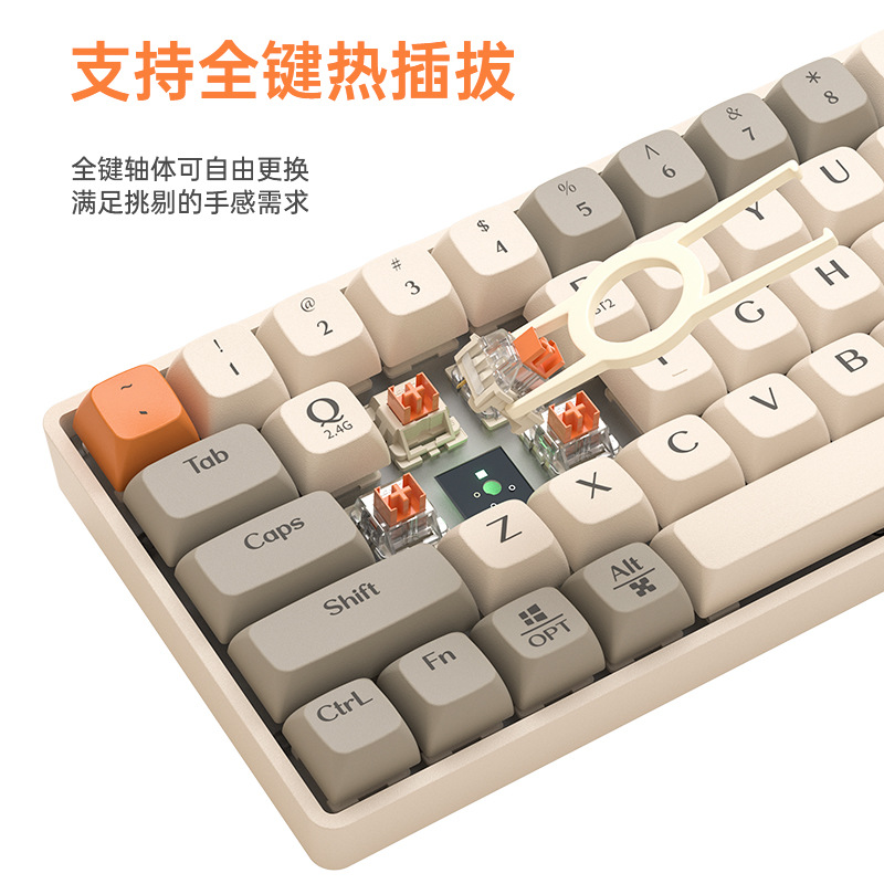65键奶白金轴【三模连接有线+2.4G+蓝牙】混光