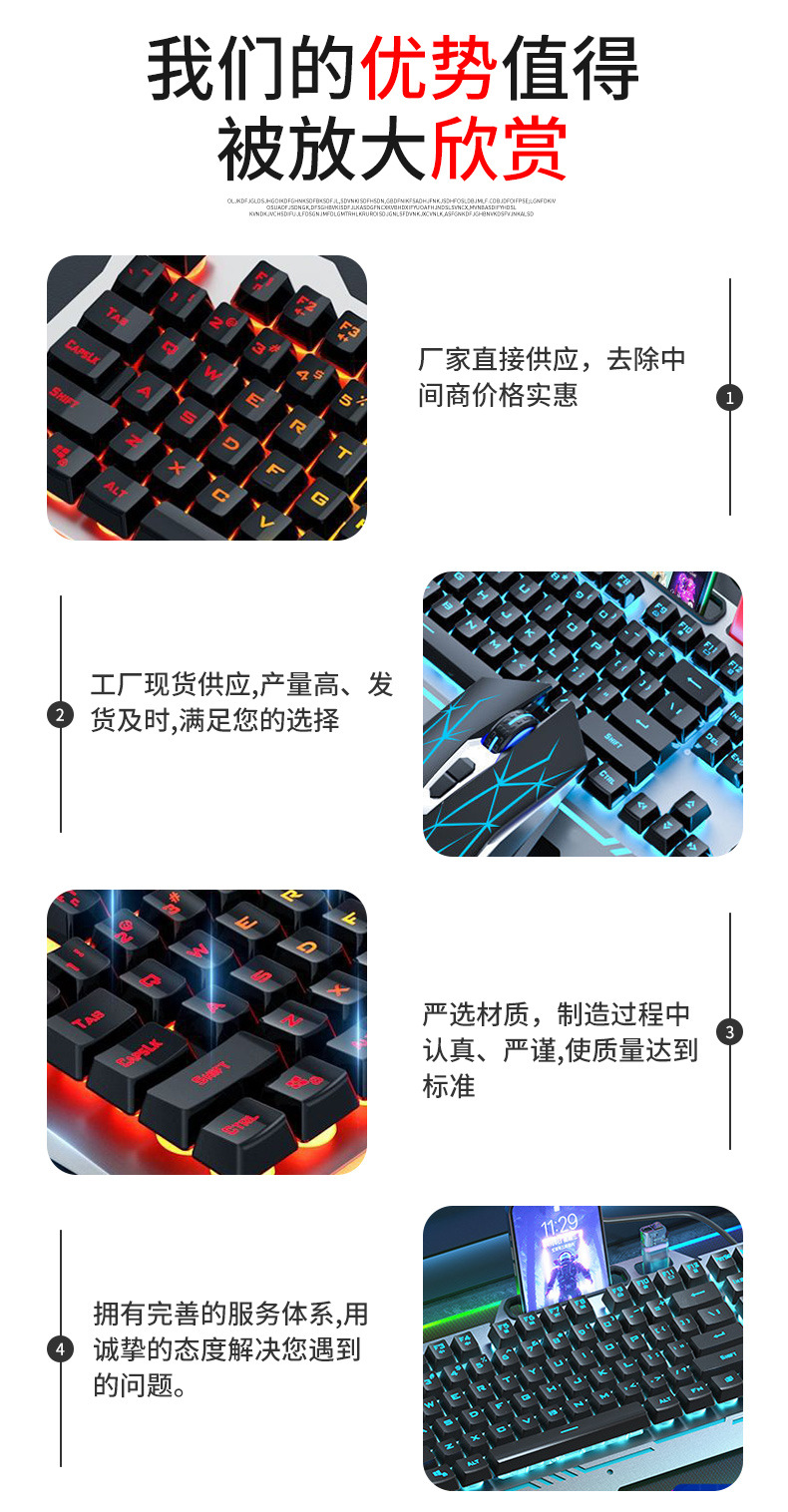 狼蛛T101/F3010机械手感键盘有线电竞游戏键鼠套装