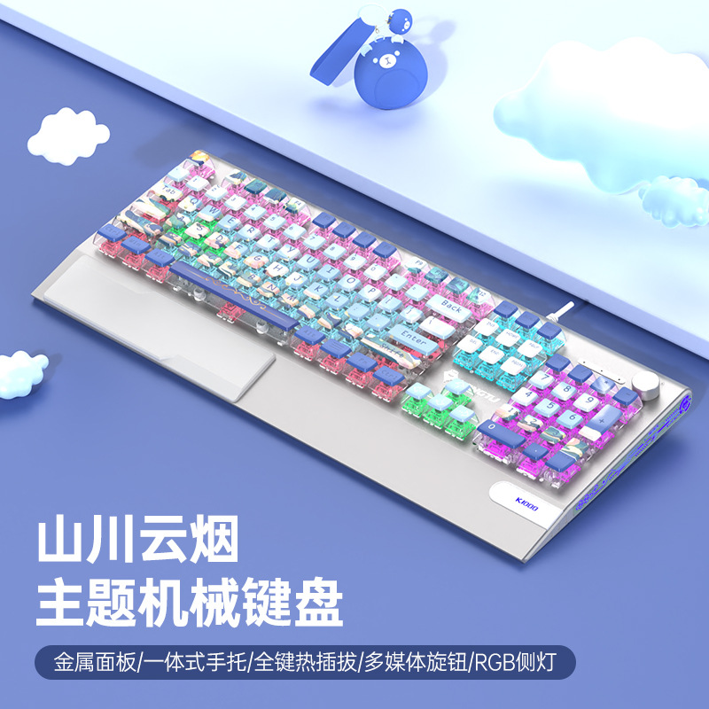 银底-山川与云烟透明版(插拔轴/RGB侧灯/大手托/旋钮)
