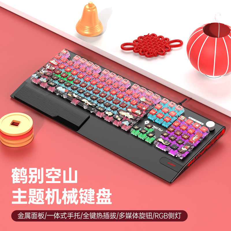 红底-鹤别空山透明版(插拔轴/RGB侧灯/大手托/旋钮)