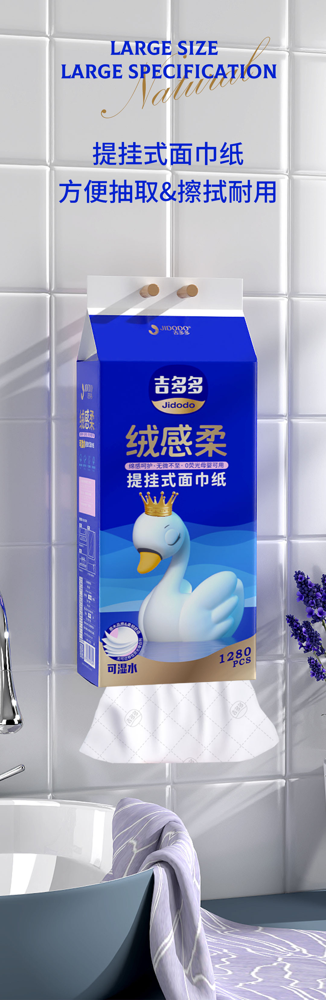 吉多多抽纸悬挂式家用实惠装可湿水柔软抽纸超值装抽取式