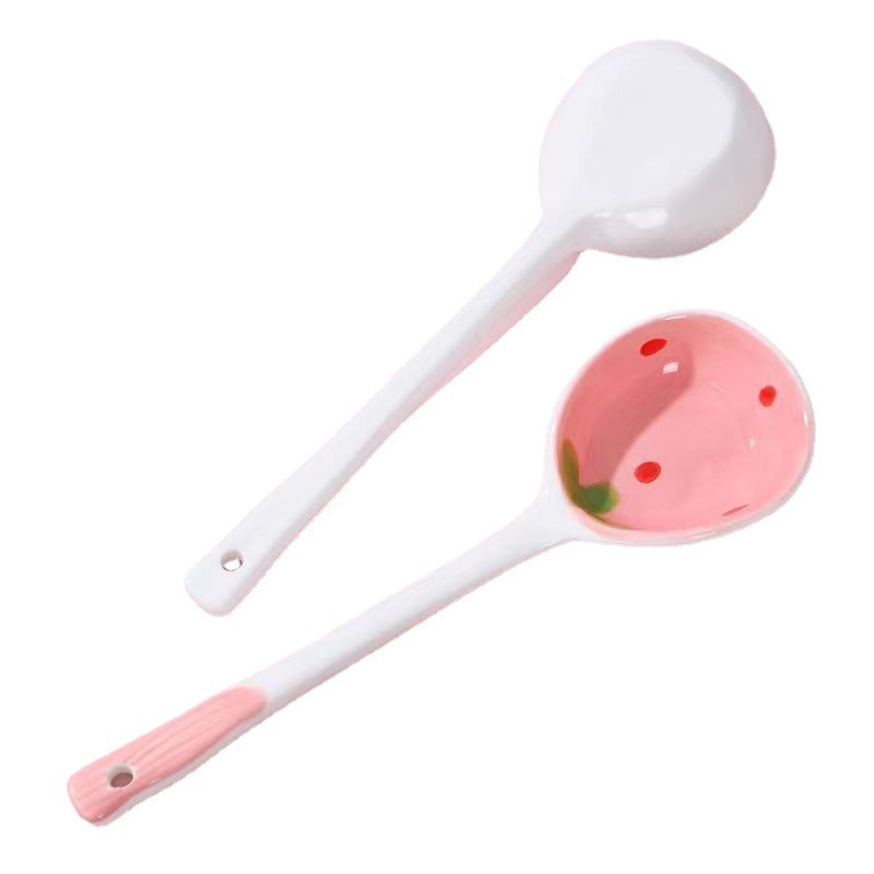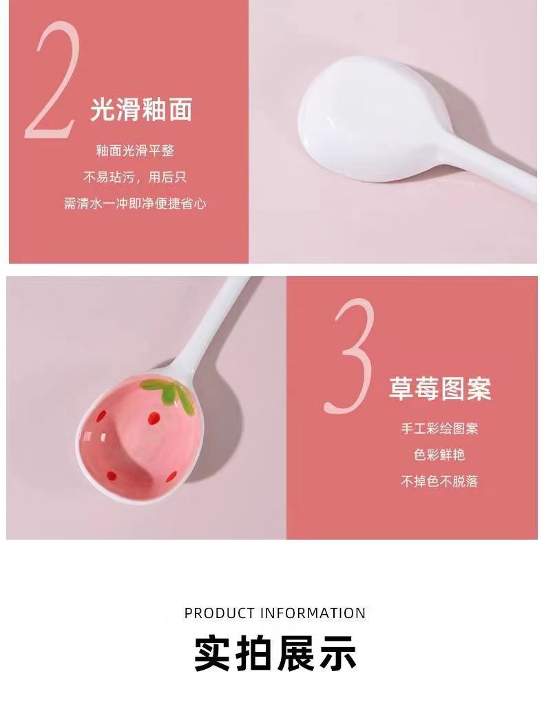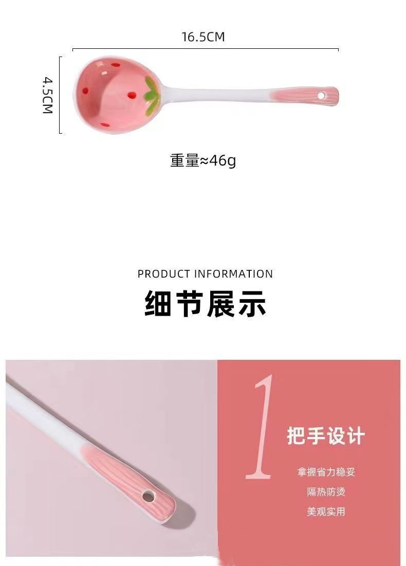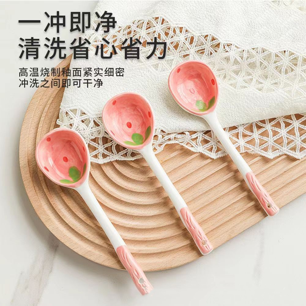 ins草莓勺陶瓷长柄勺子高颜值烹饪勺子家用调羹少女甜点勺