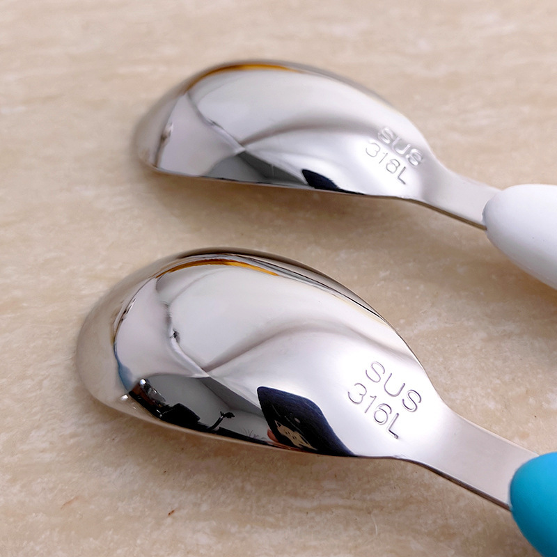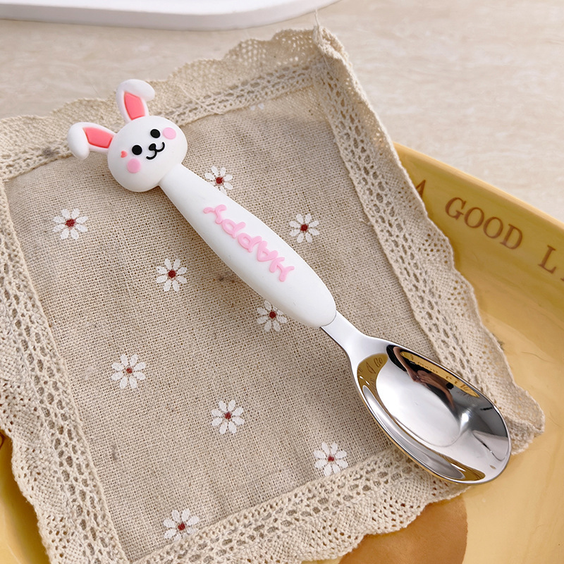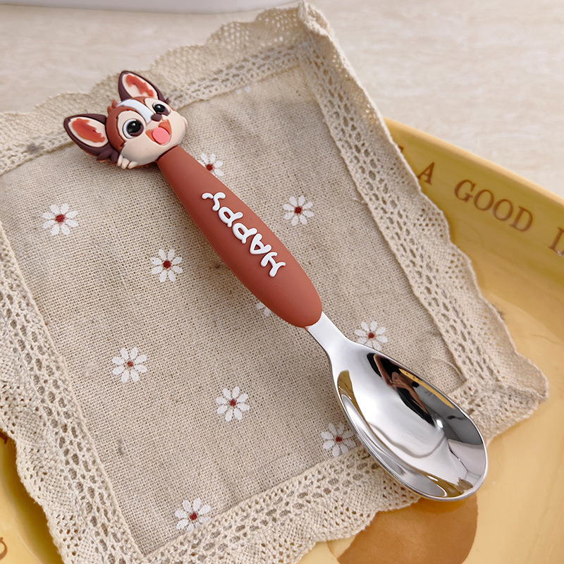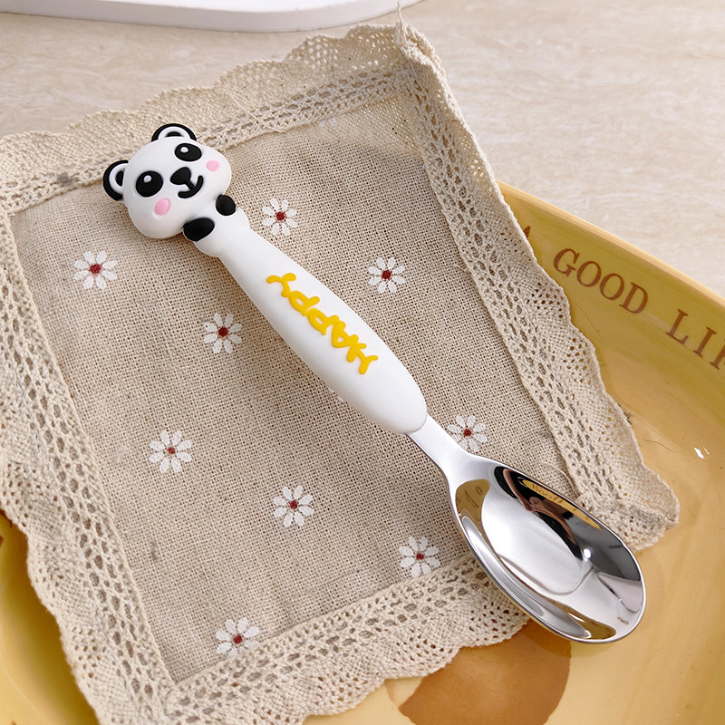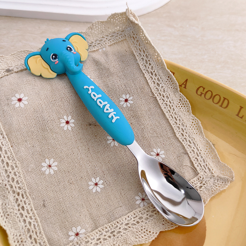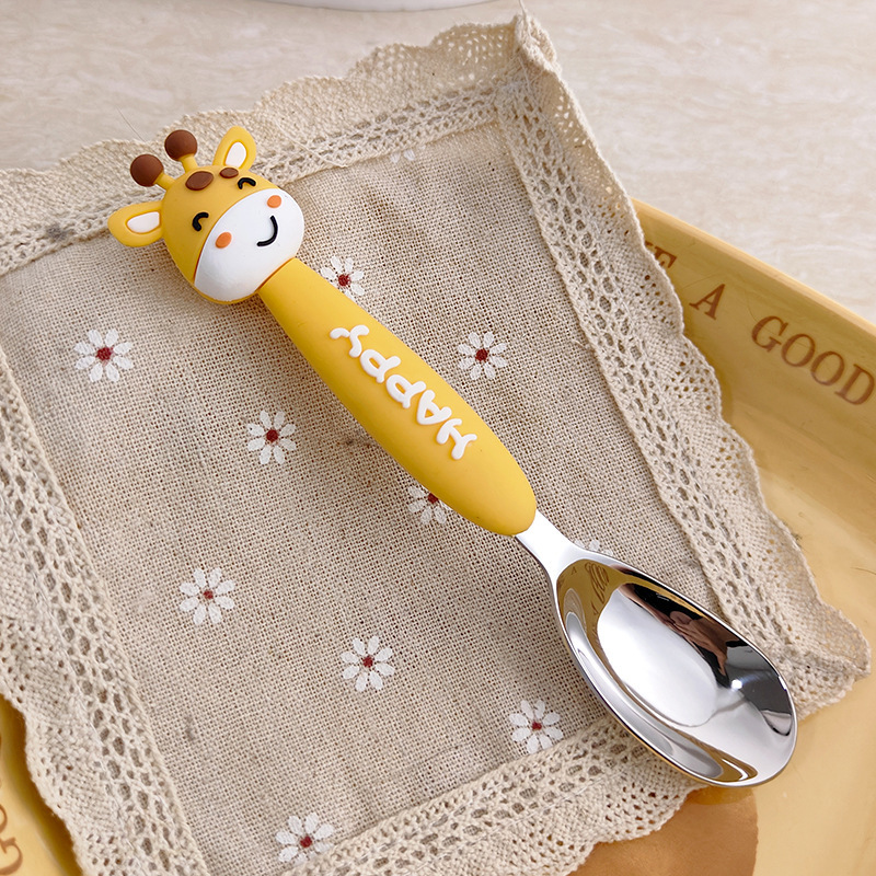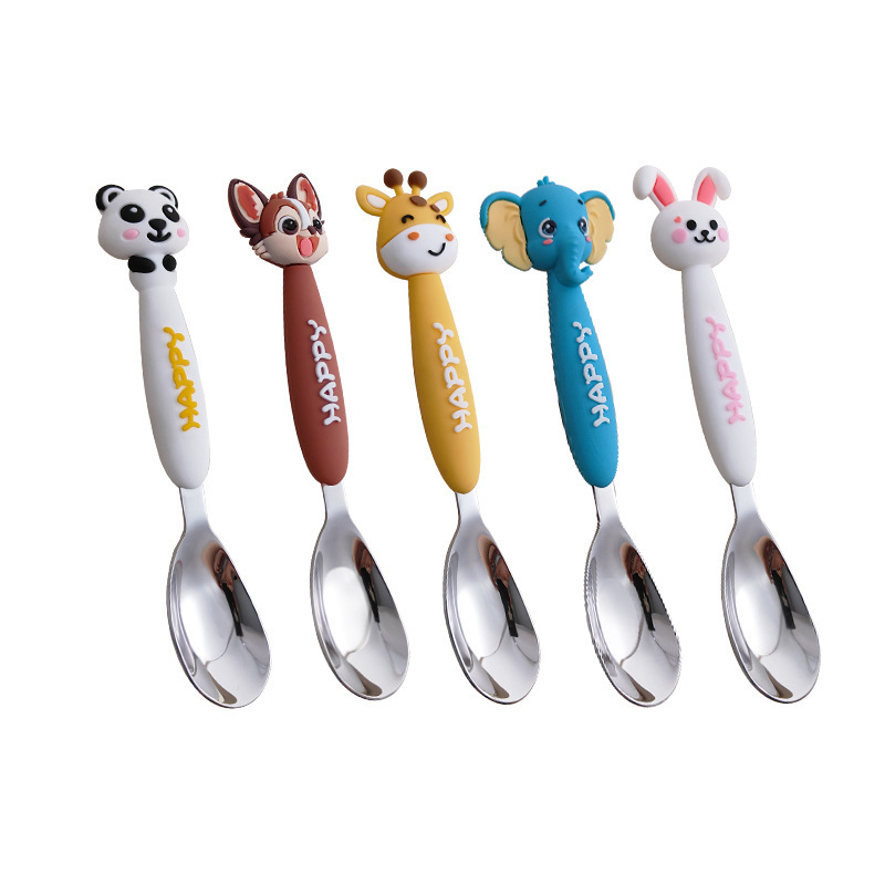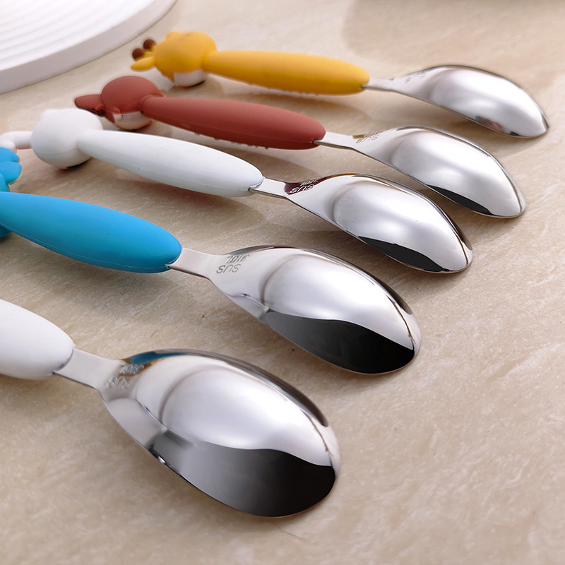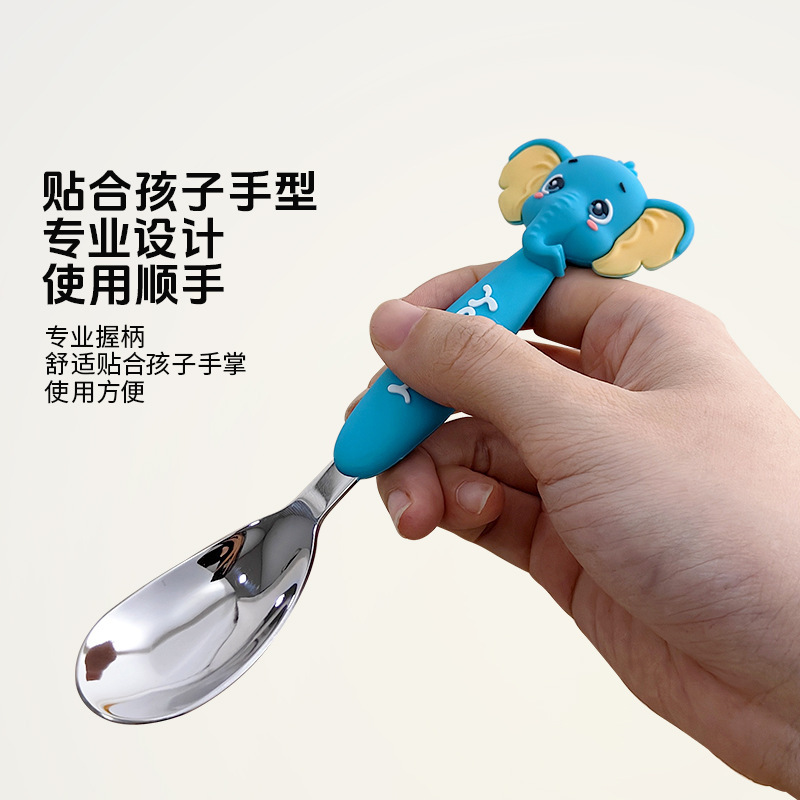 316L不锈钢勺子卡通动物儿童餐具家用宝宝辅食吃饭元宝勺加深汤匙