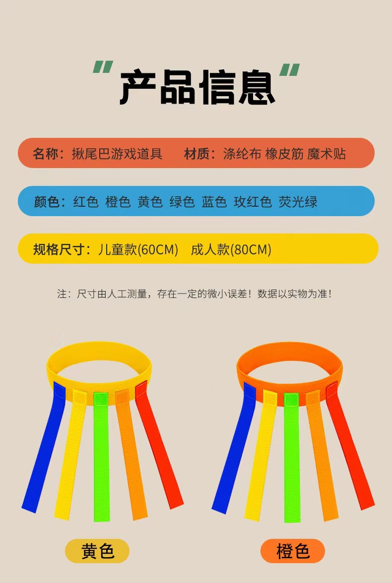 跨境幼儿园揪尾巴玩具儿童抓尾巴亲子户外体育游戏训练