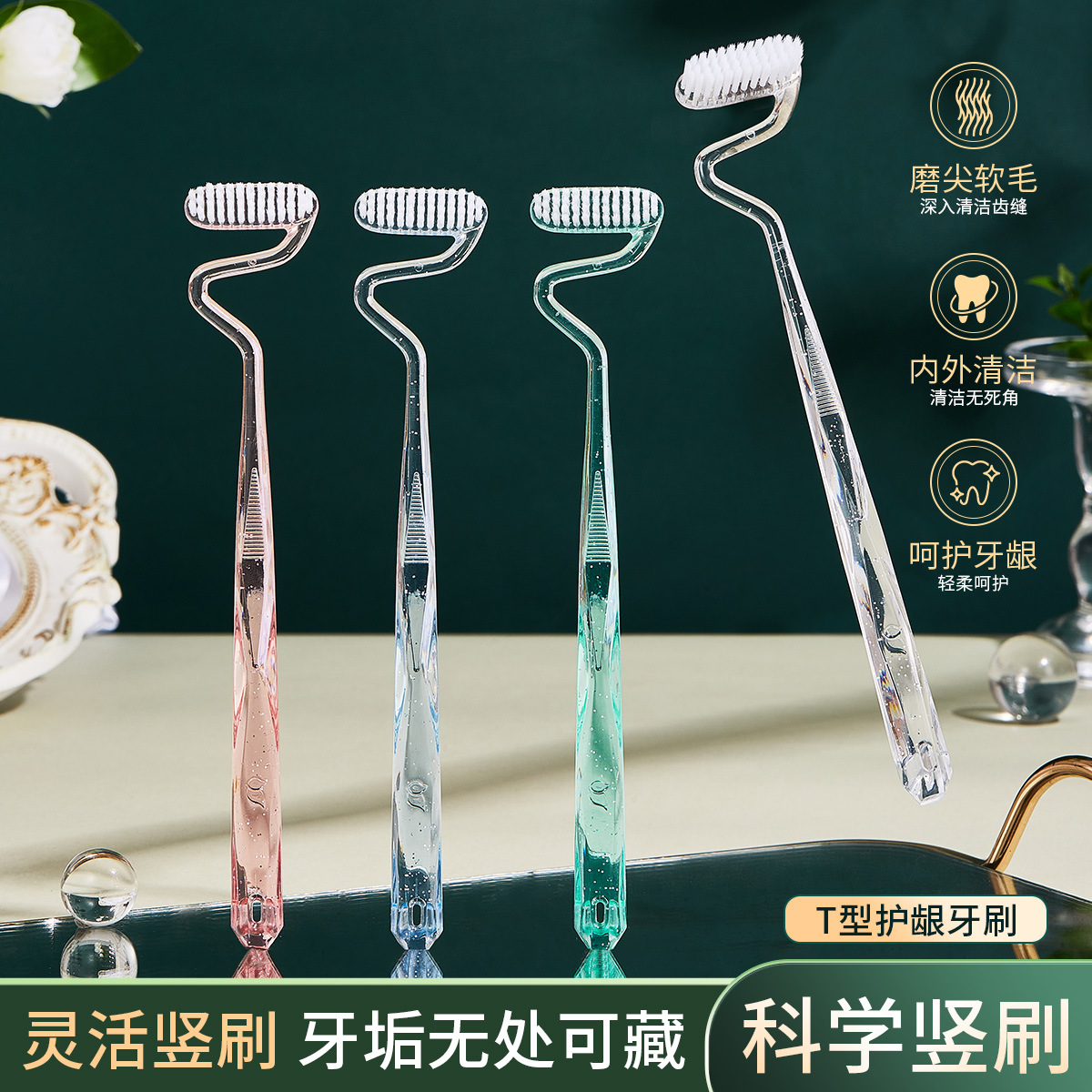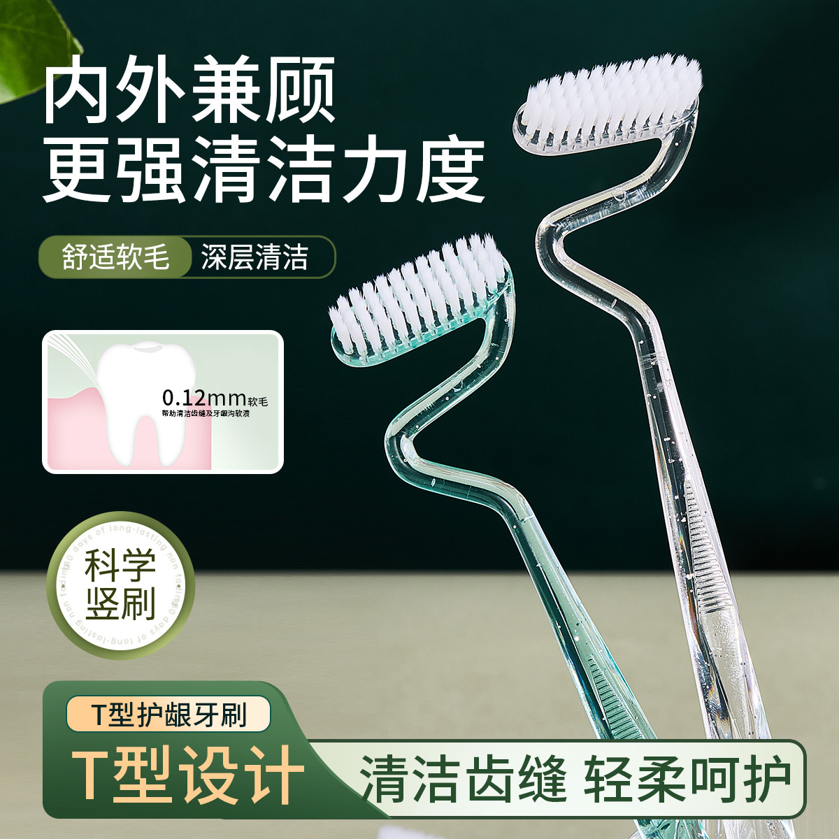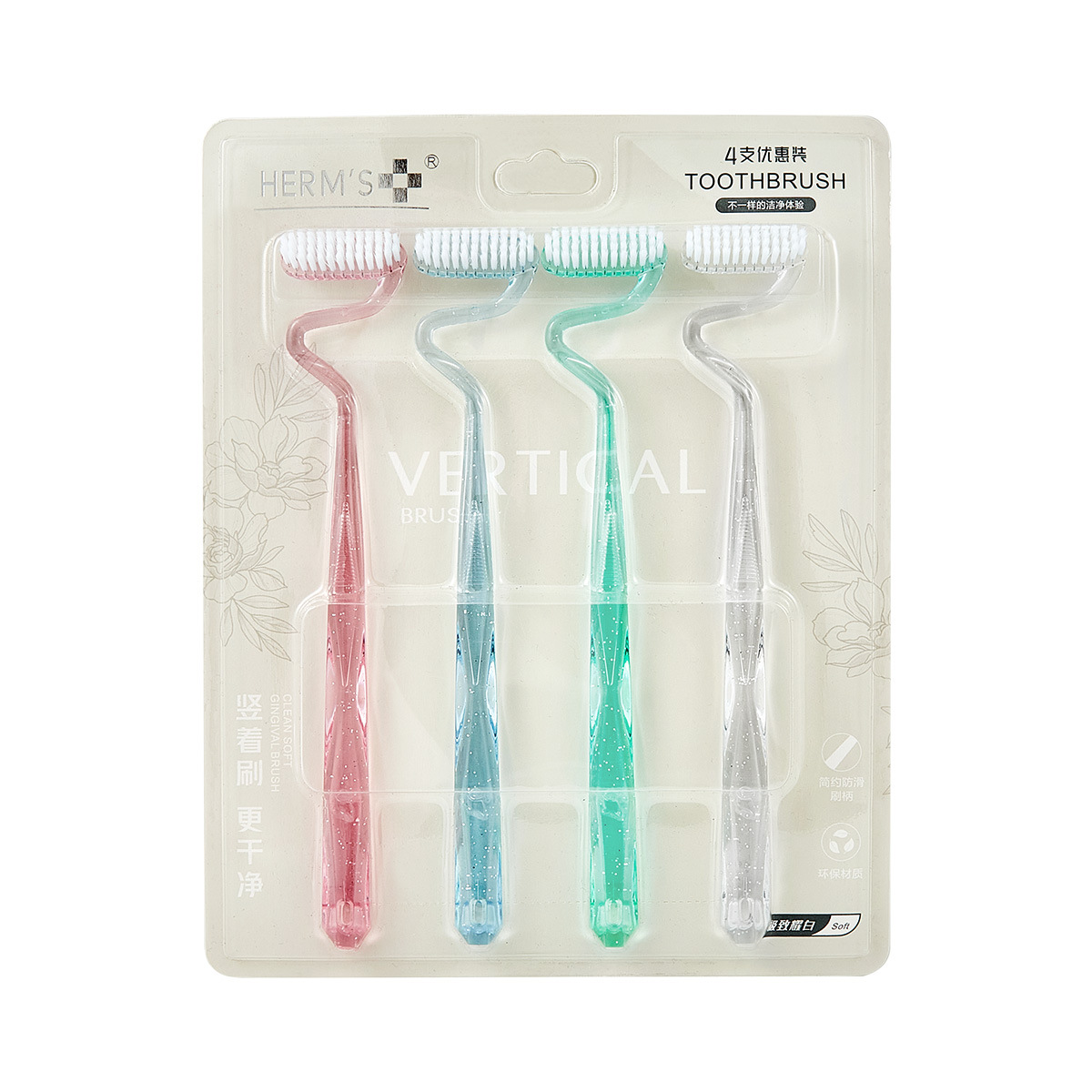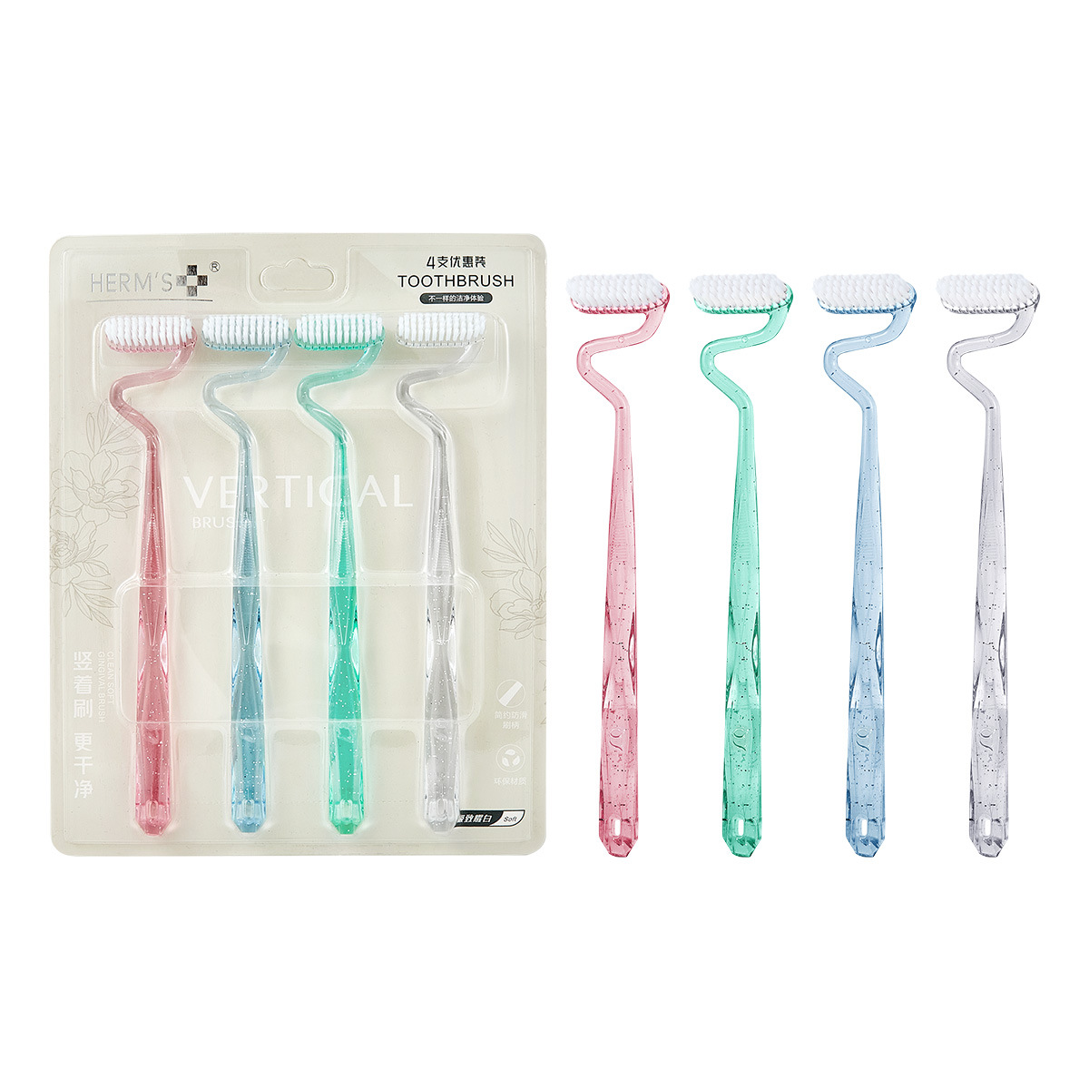 【四支装】S型牙刷软毛家庭装家用竖刷成人牙龈舌苔牙缝高效清洁