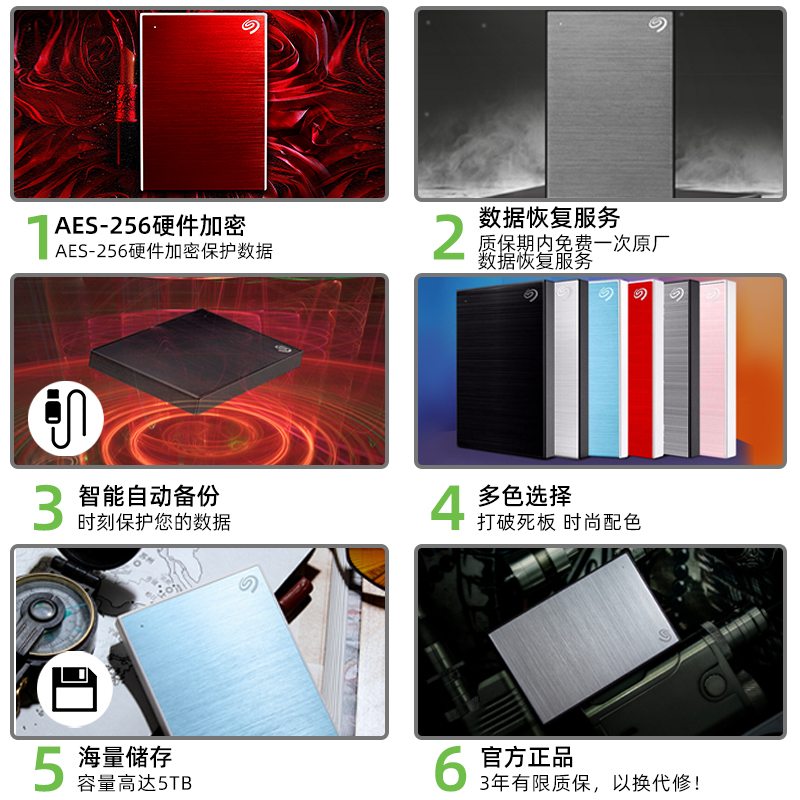 希捷移动硬盘2t加密外置高速1t外接正品存储5tb