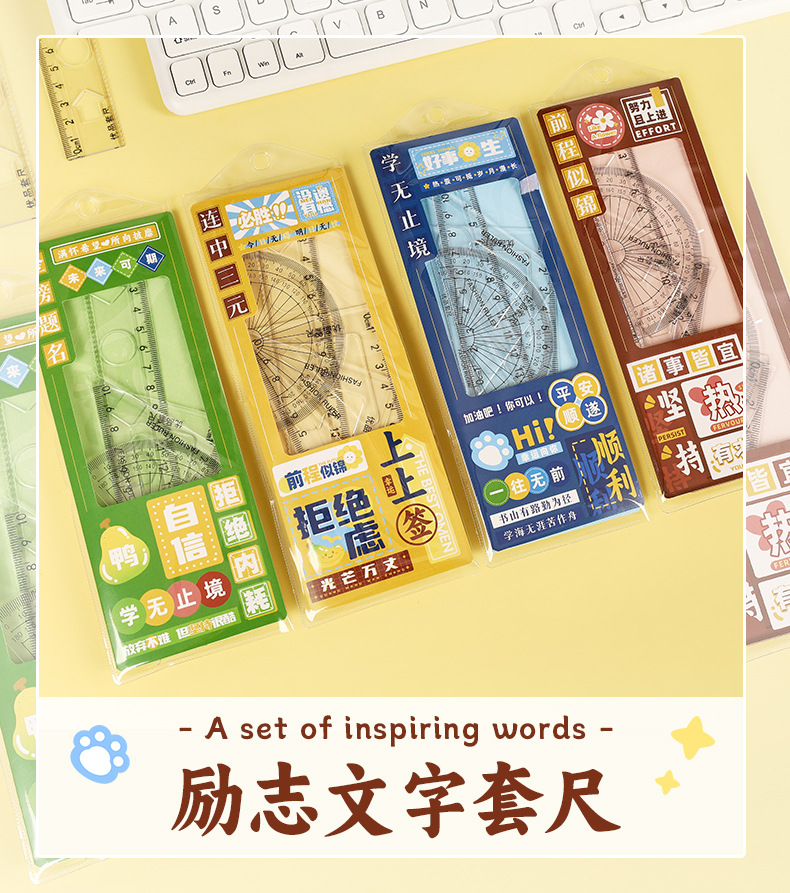 套尺学生四件套高颜值透明直尺三角板量角器尺子套装