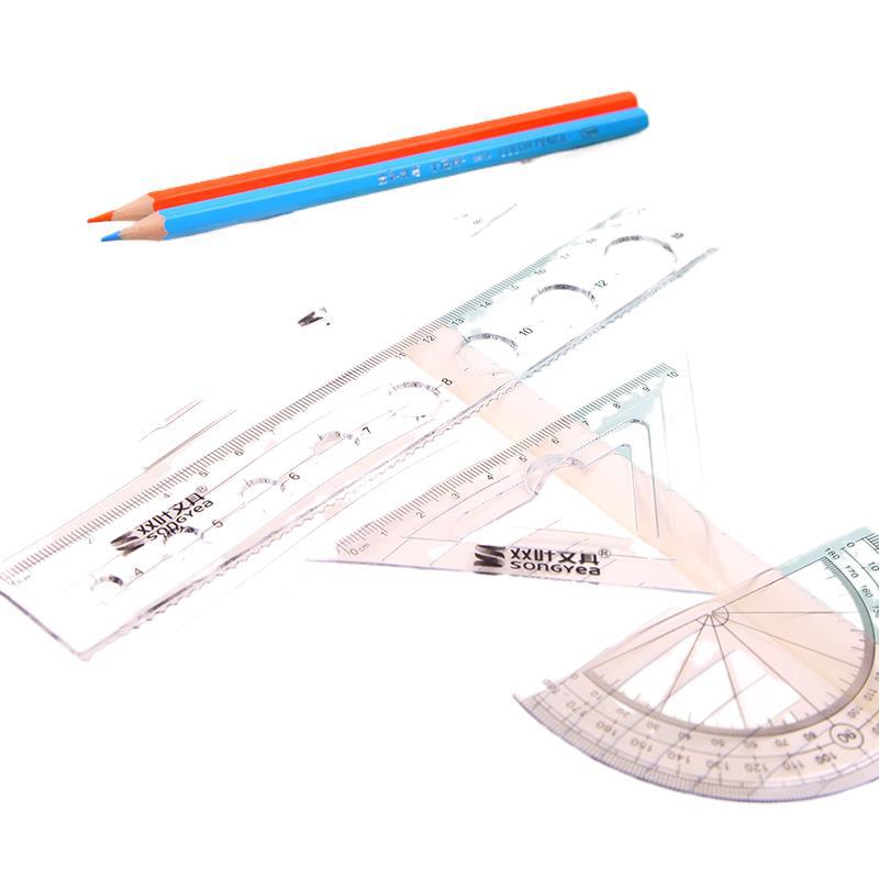 学生套尺4件套直尺20cm三角板套装尺子量角器多功能