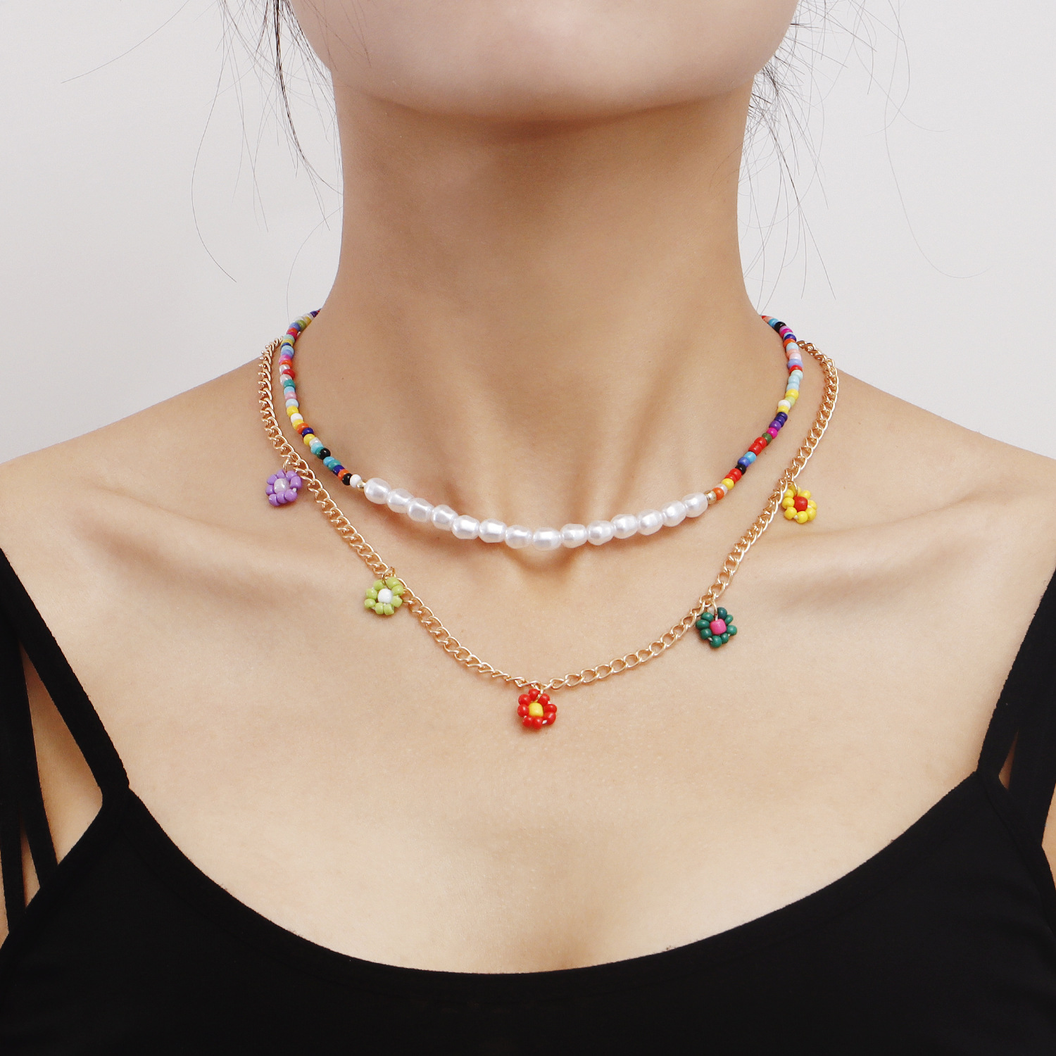 复古手工编织雏菊花朵串珠项链女 ins七彩米珠项饰