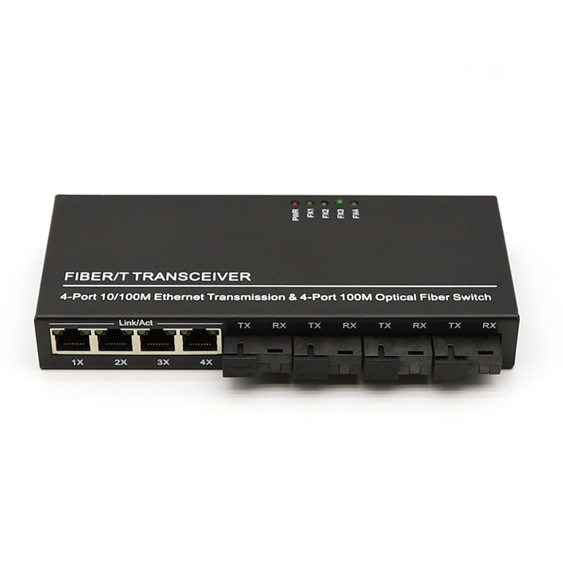 百兆4光4电光纤收发器光电转换器可汇聚级联4个光口4个电口一台