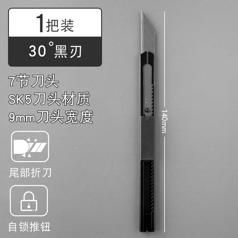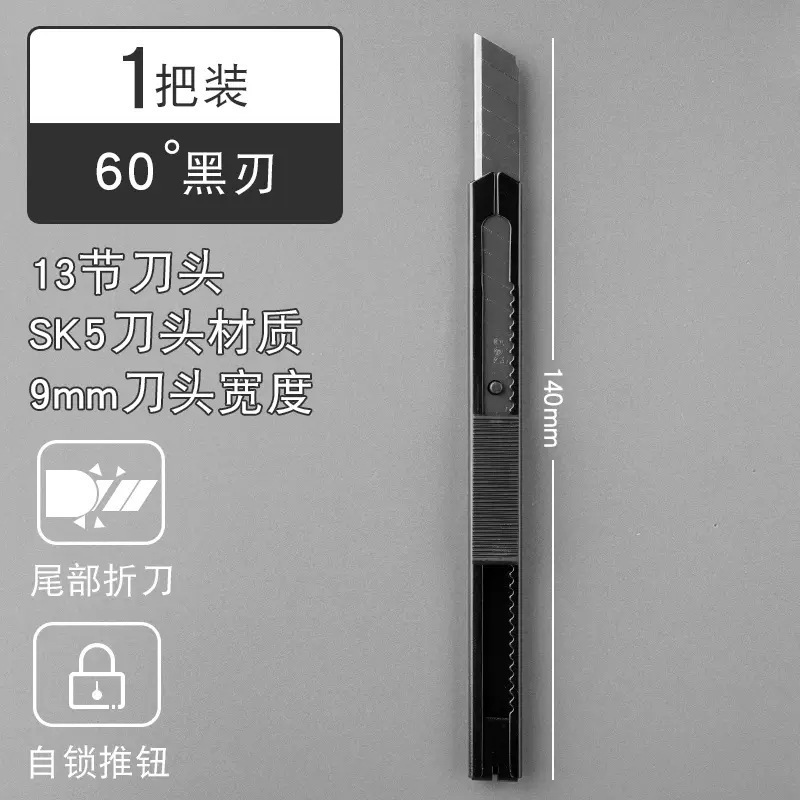 美工刀9mm裁纸刀60°黑色学生美术手工刀小号黑刃切膜刀