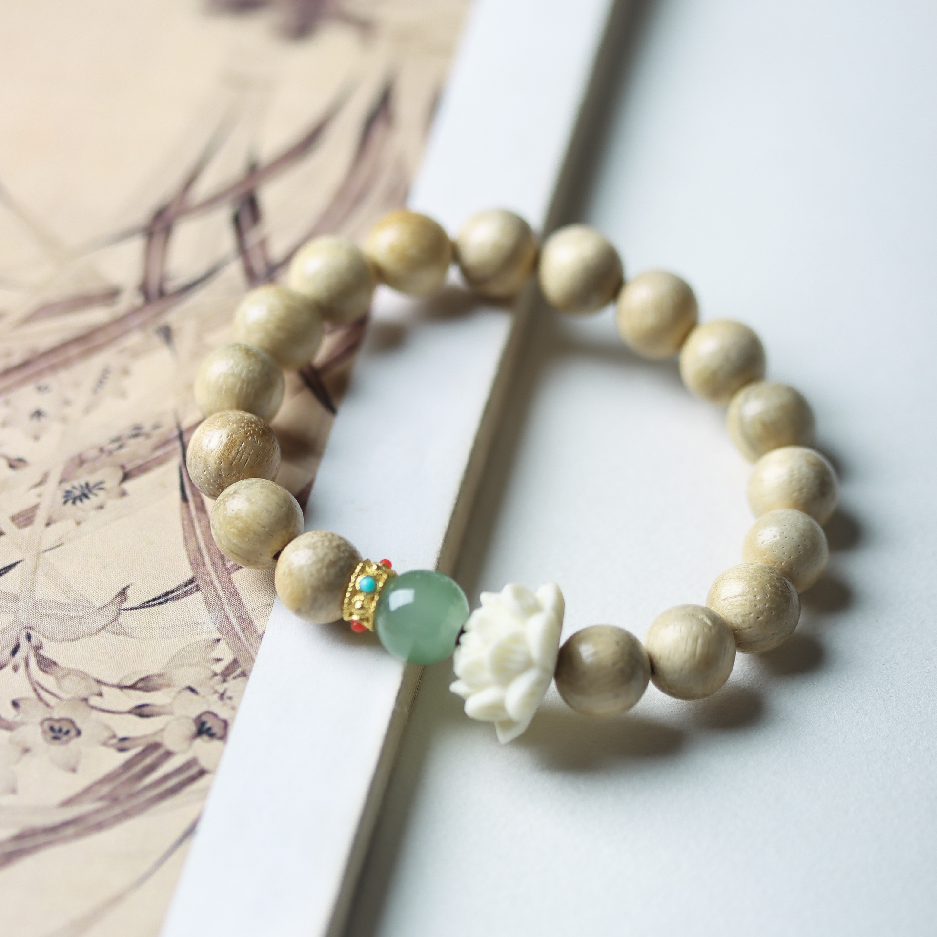 奶香木佛珠手串莲花手链女生新款中式小众复古手饰文玩木珠