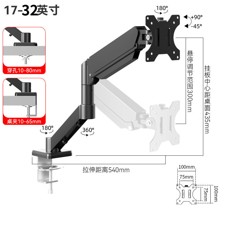 显示器支架单屏倒挂双屏桌面升降可旋转增高架屏幕悬臂底座机械臂