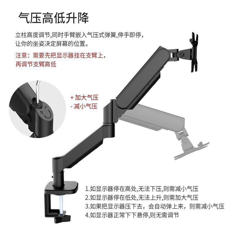 电脑显示器支架可旋转升降台式免打孔显示屏幕悬臂支架机械臂