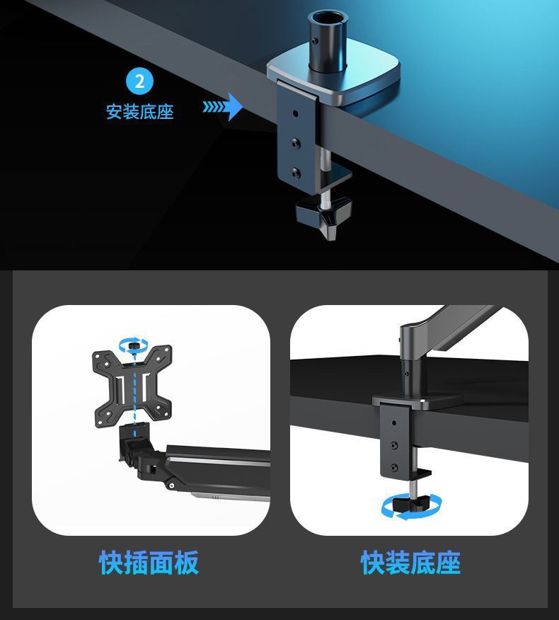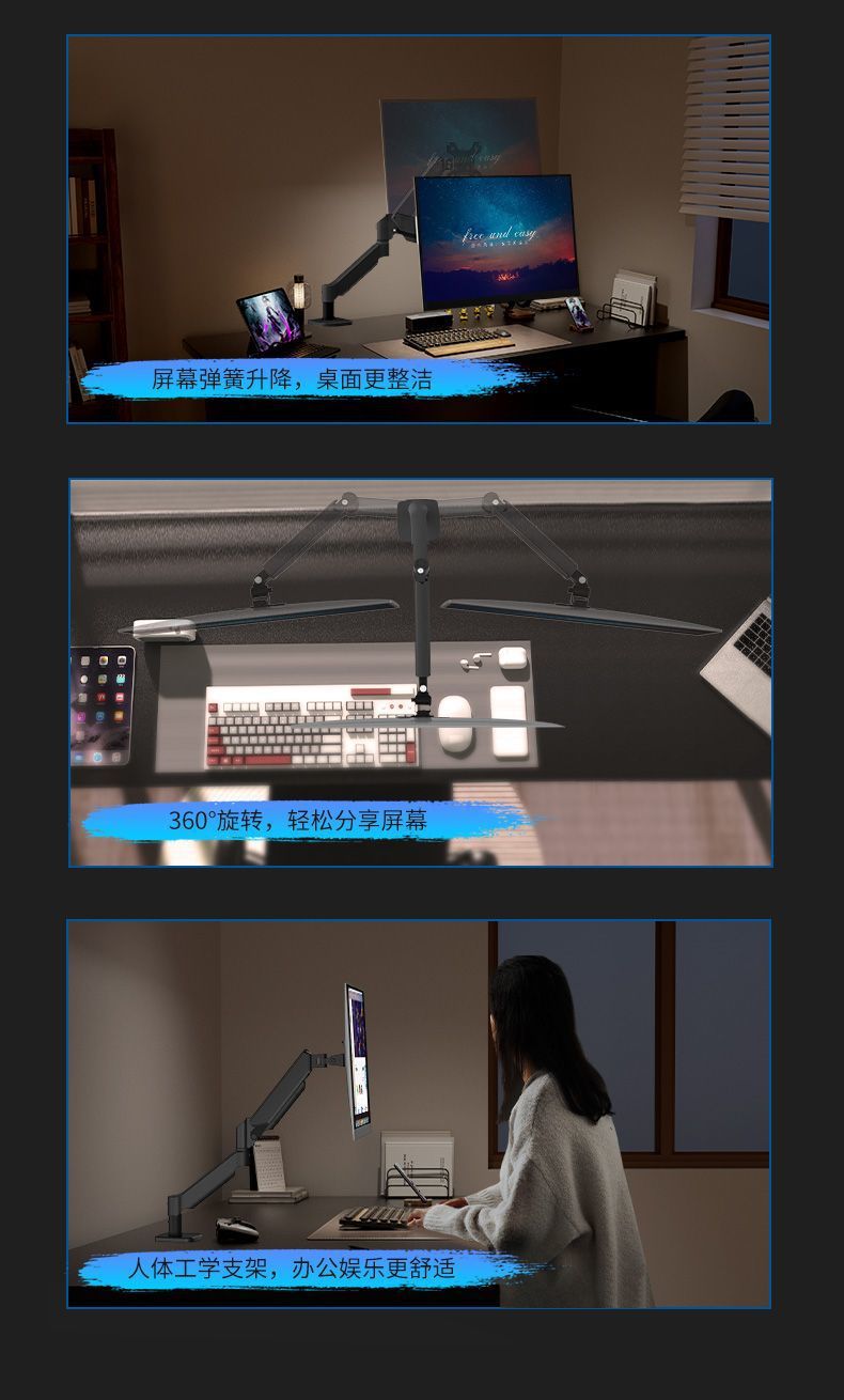 32寸电脑显示器支架可旋转升降台式免打孔显示屏幕悬臂支架机械臂
