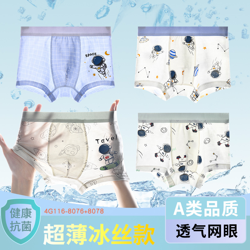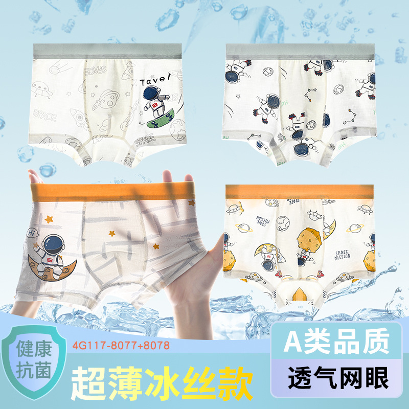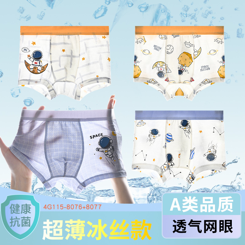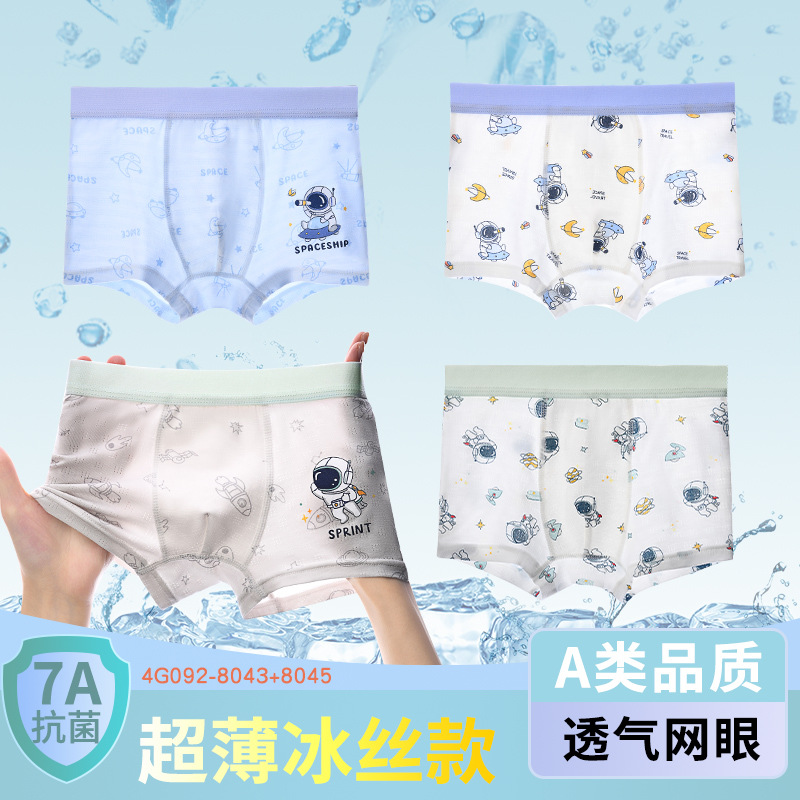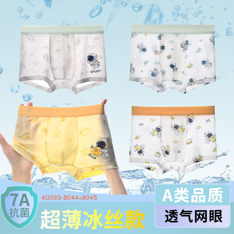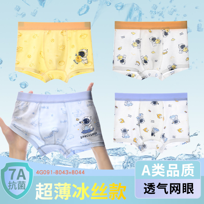 男童内裤冰丝夏季薄款网眼儿童平角纯棉中大童小男孩宝宝四角短裤