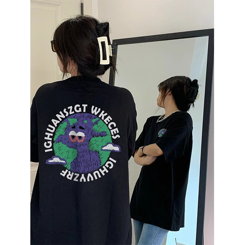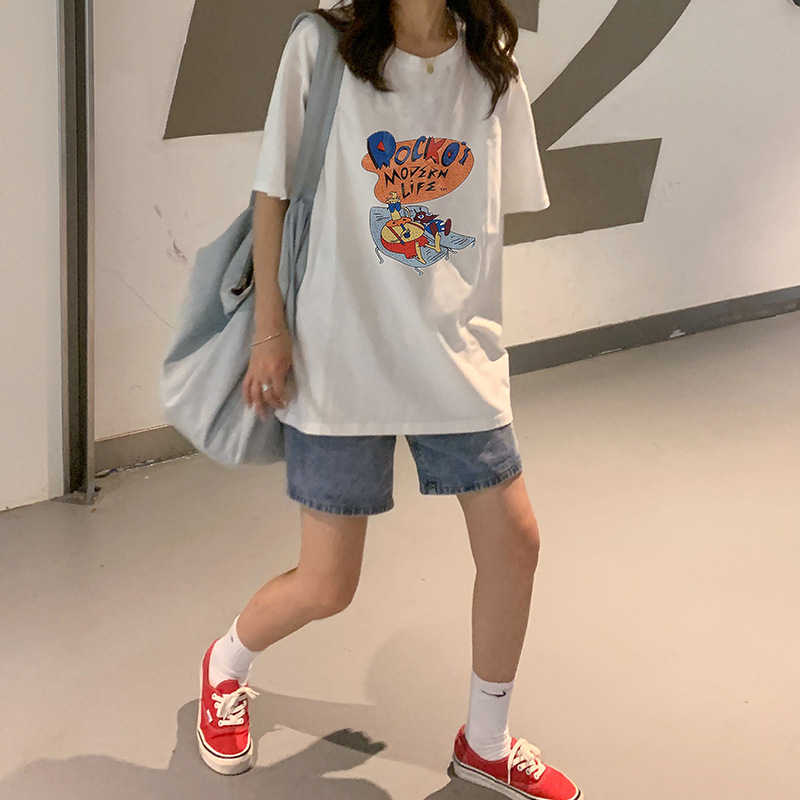 ins风白色短袖T恤女装夏季新款韩版卡通印花纯棉宽松百搭上衣