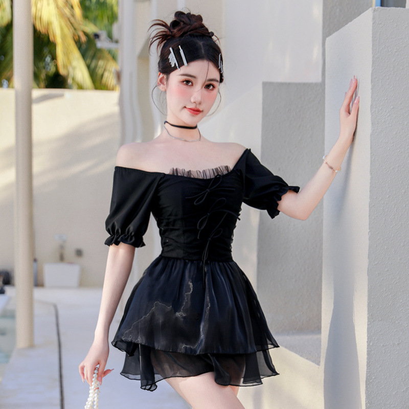 [复古宫廷】仙气游泳衣女收腰修身高腰蕾丝温泉保守遮肚显瘦泳装