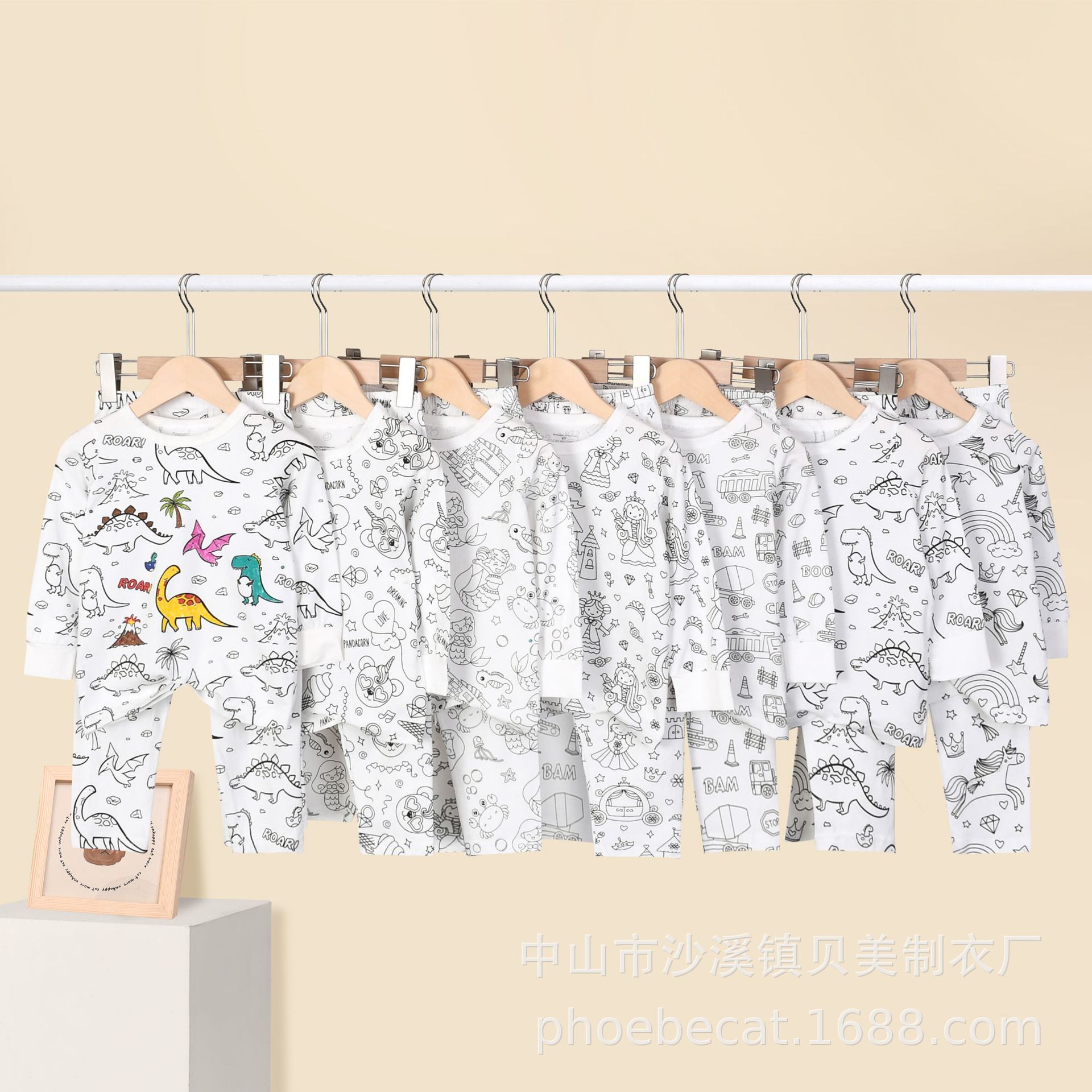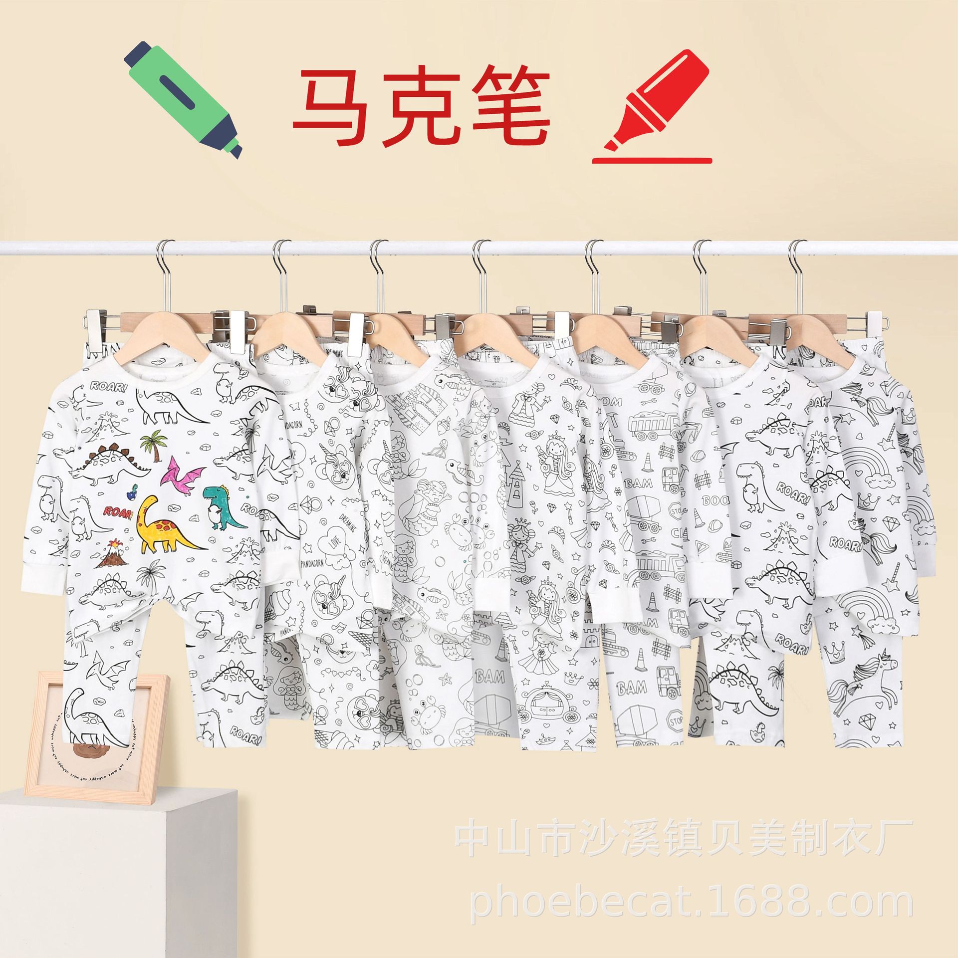 男女儿童睡衣DIY随心涂鸦卡通外贸童套装