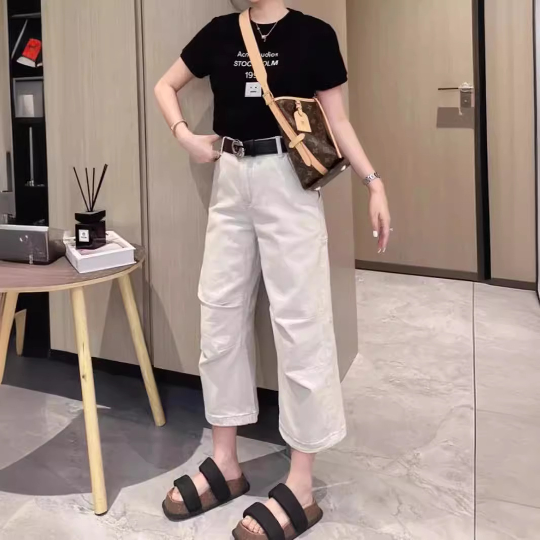 辣妹炸街直筒休闲裤美式街头复古风不规则大口袋宽腰带设计牛仔裤