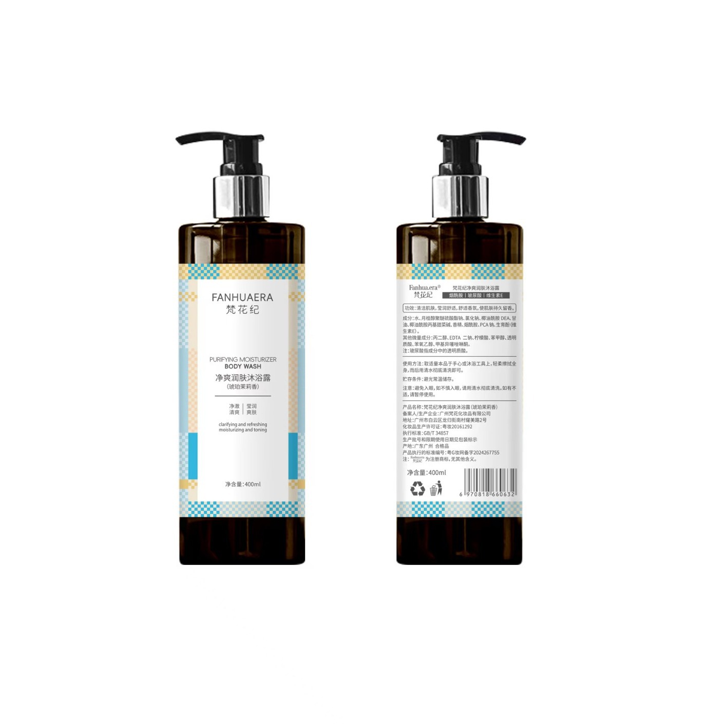 红褐色梵花纪净爽润肤沐浴露