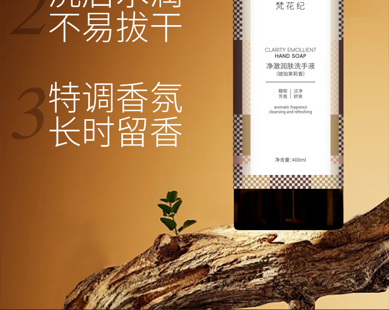 红褐色梵花纪净澈润肤洗手液