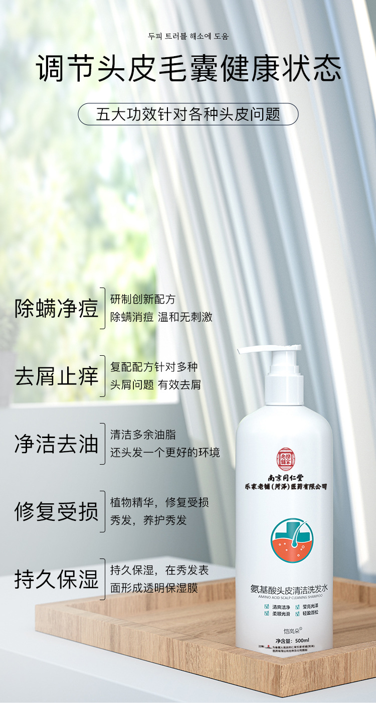 南京同仁堂恺岚朵氨基酸头皮清洁洗发水露批发毛炎修复宁植物除螨