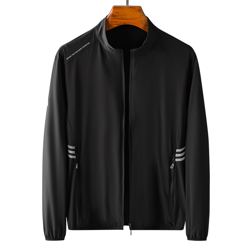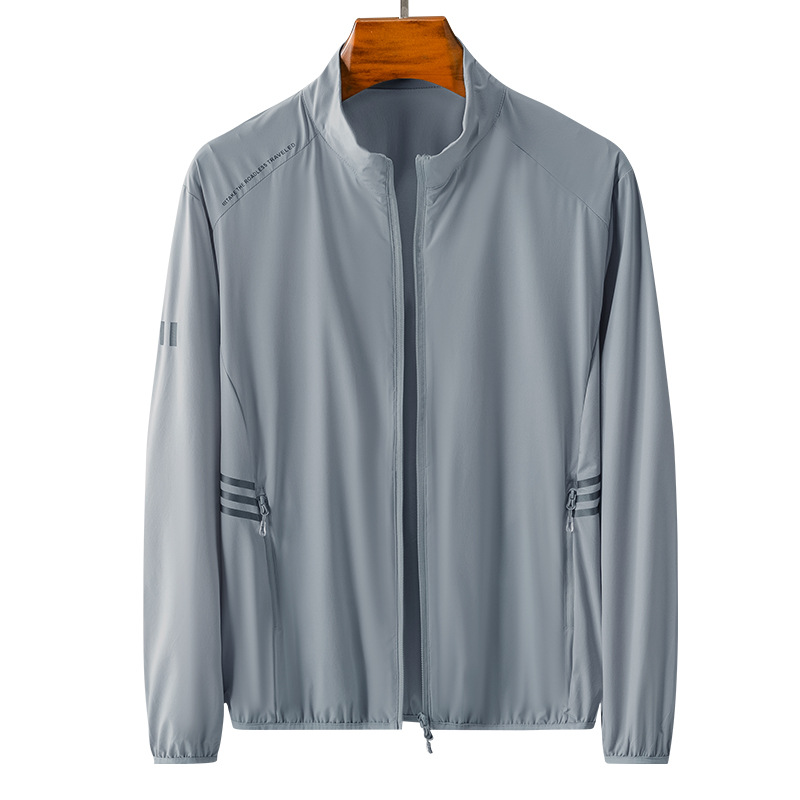 春夏男士透气舒适锦氨高弹拉链垂感顺滑贴身长袖健身跑步防晒衣