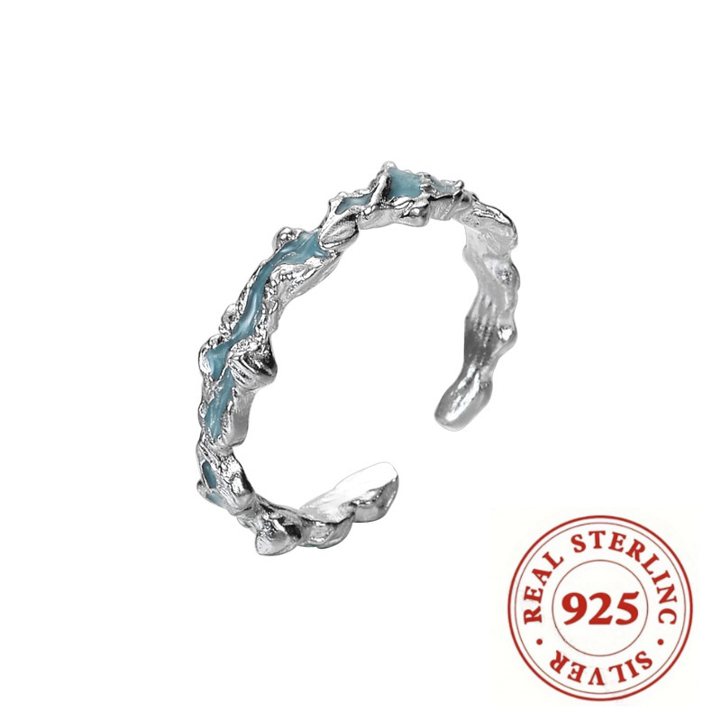 925纯银时尚精致几何不规则纹理开口戒指 滴胶形防过敏活口可调节