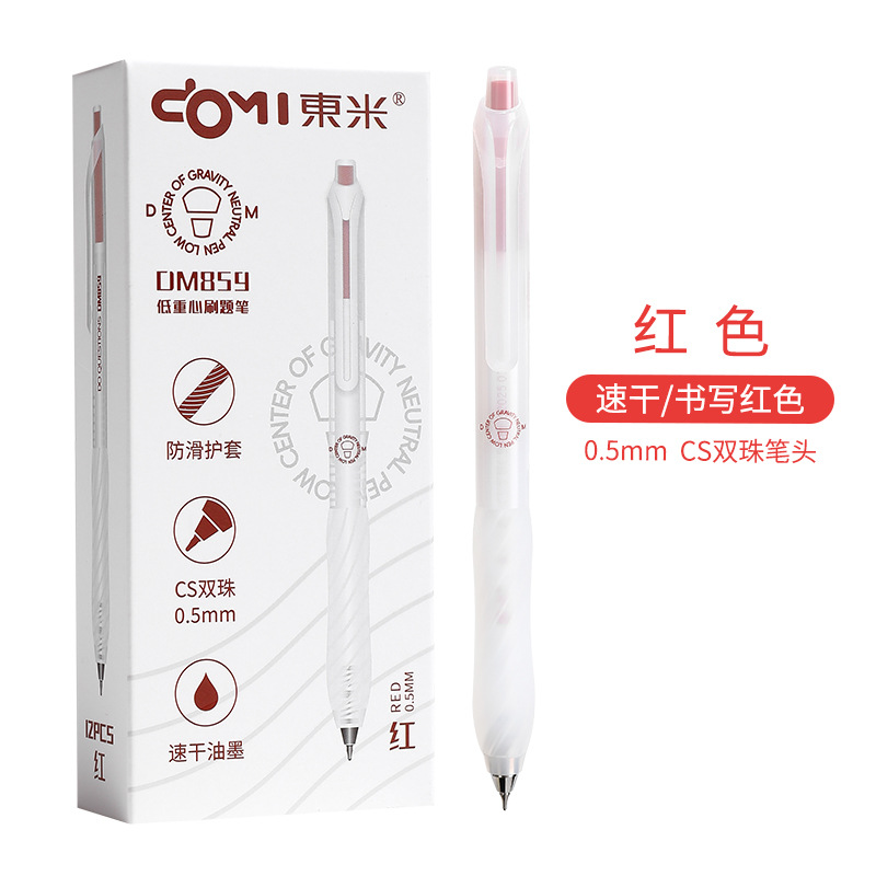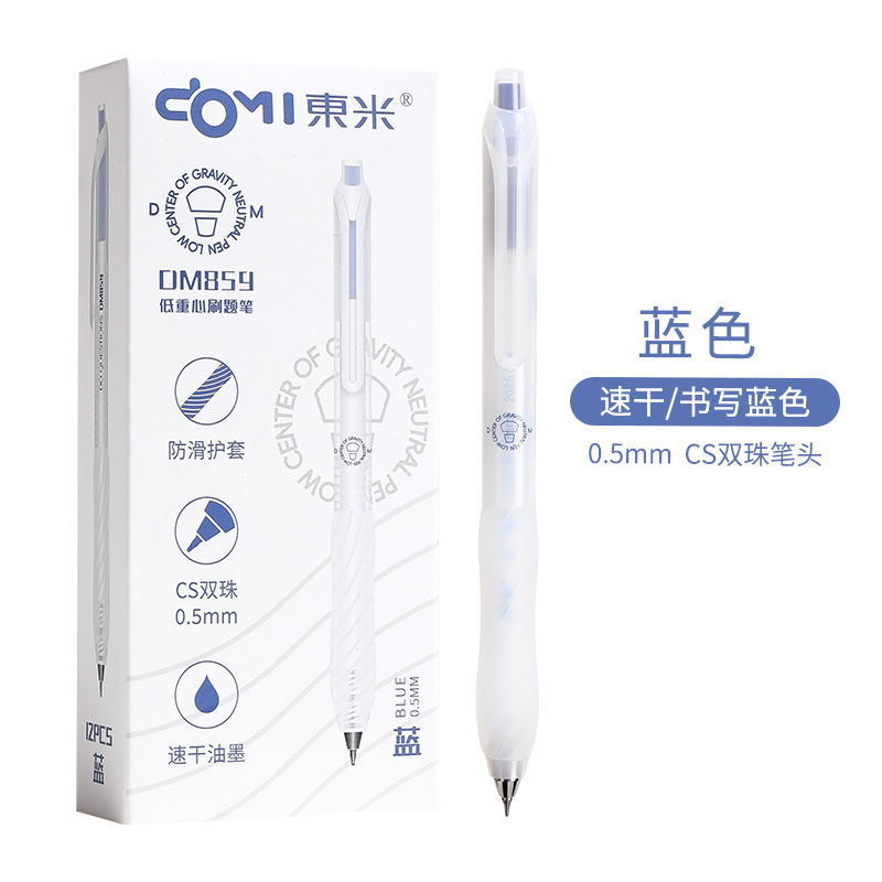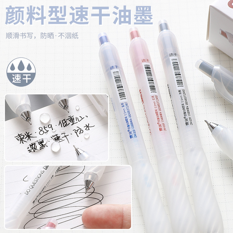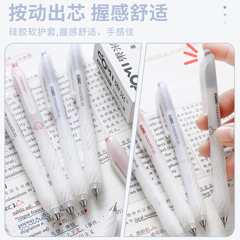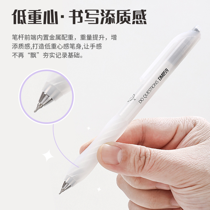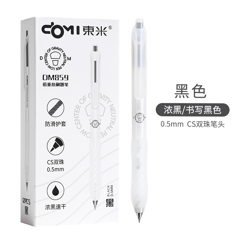 东米859低重心刷题笔ins简约风按动中性笔软护套速干双珠CS黑0.5
