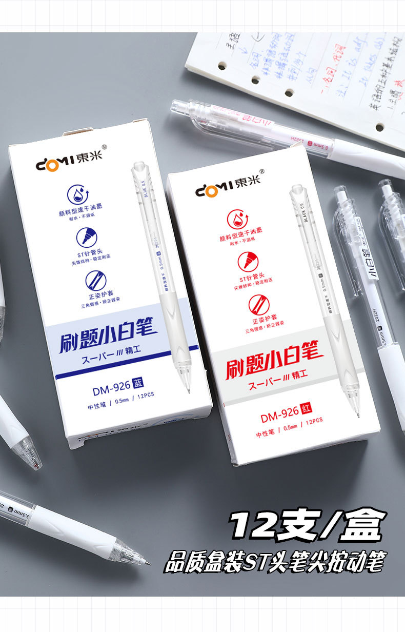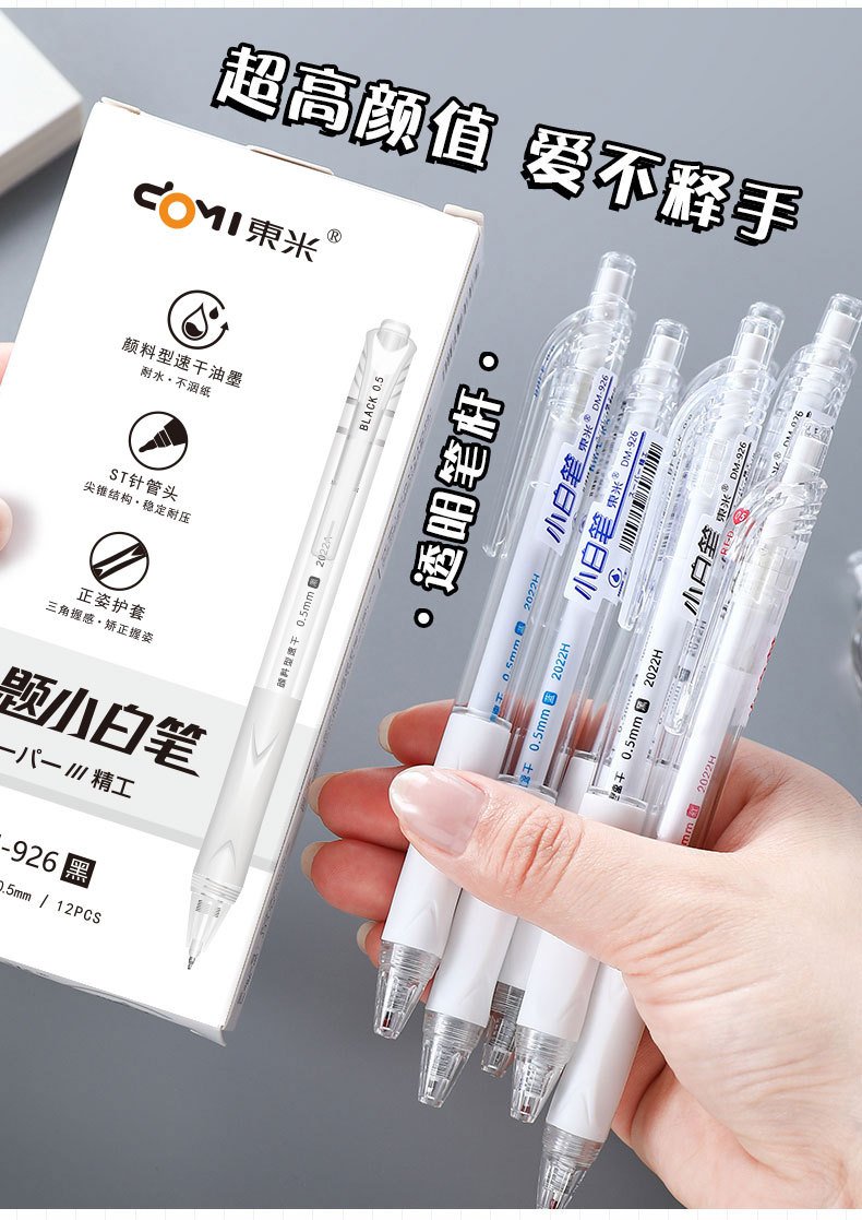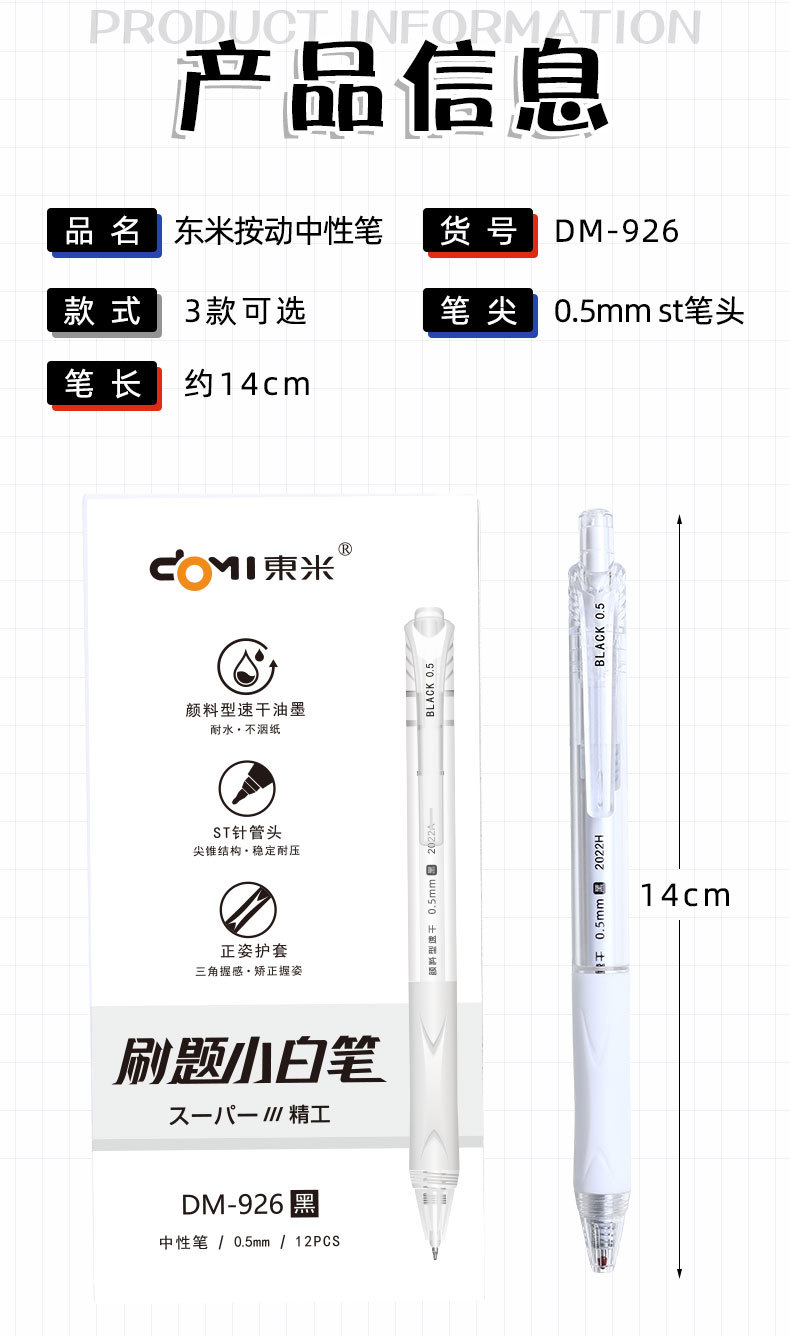 东米926刷题小白笔速干按动中性笔三角正姿软护套学生考试用0.5st