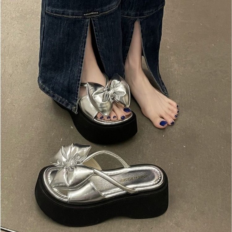 蝴蝶结厚底增高7CM拖鞋女夏季外穿时尚仙女风2025年新款一字凉拖