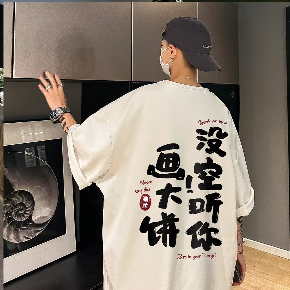 夏季体恤男女青少年款百搭舒适休闲中国风印花短袖圆领宽松t恤棉